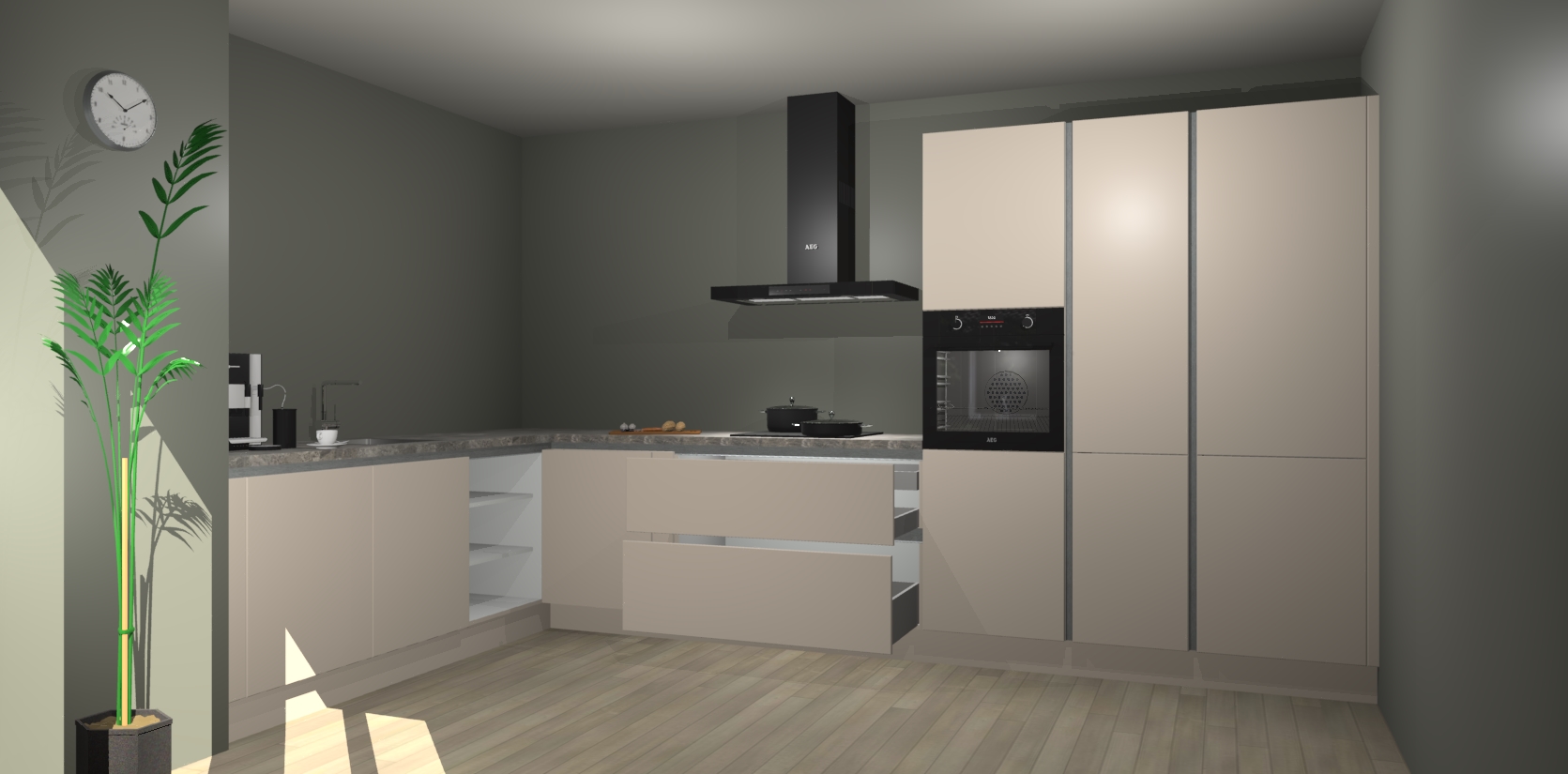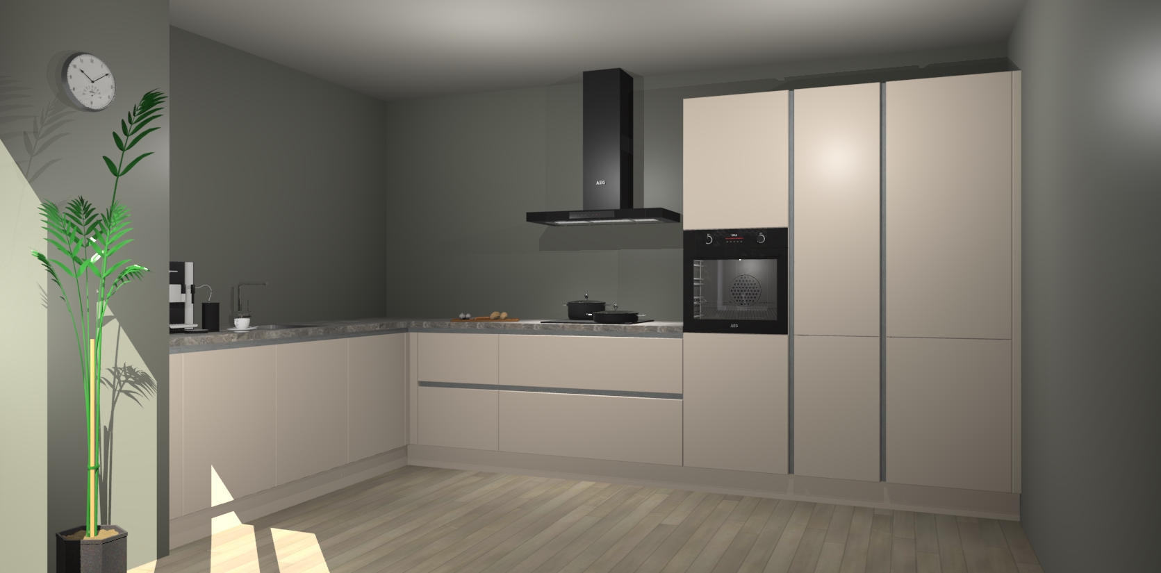 Welkom bij de kasjmier greeploze keuken Nuuk. Deze prachtige keuken zal de komende jaren het middelpunt van de belangstelling in uw huis zijn. Uitgerust met vijf inbouwapparaten komt u nooit kookgereedschap tekort.