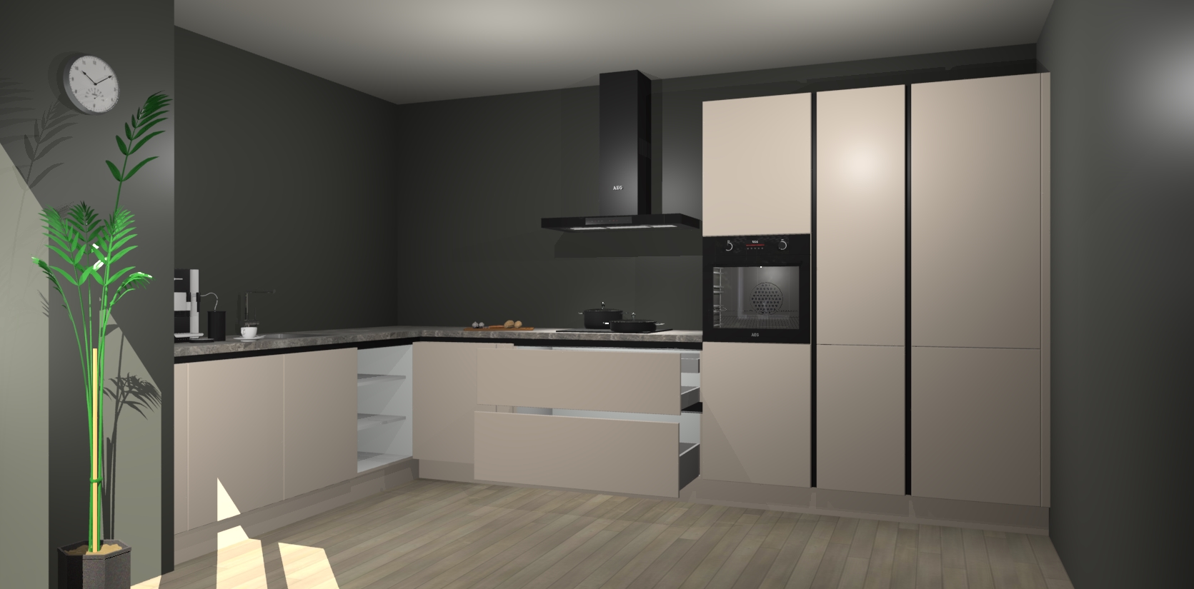 Welkom bij de kasjmier greeploze keuken Nuuk. Deze prachtige keuken zal de komende jaren het middelpunt van de belangstelling in uw huis zijn. Uitgerust met vijf inbouwapparaten komt u nooit kookgereedschap tekort.