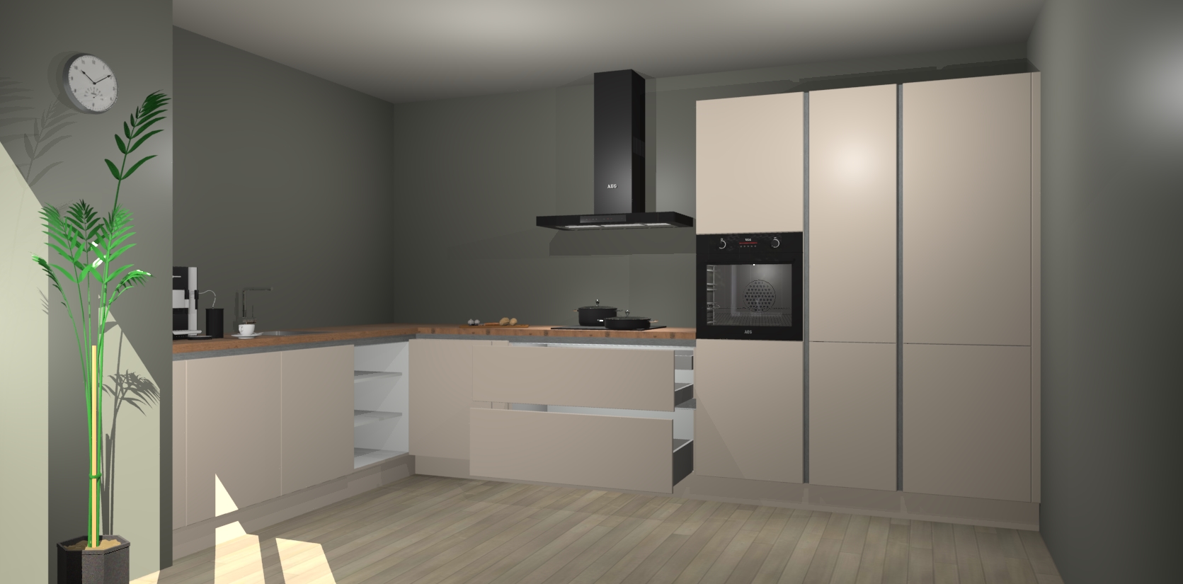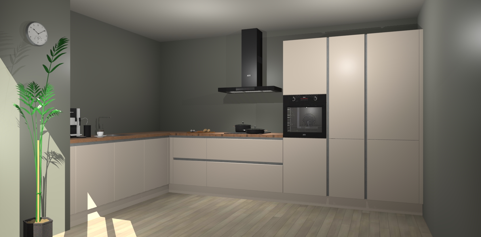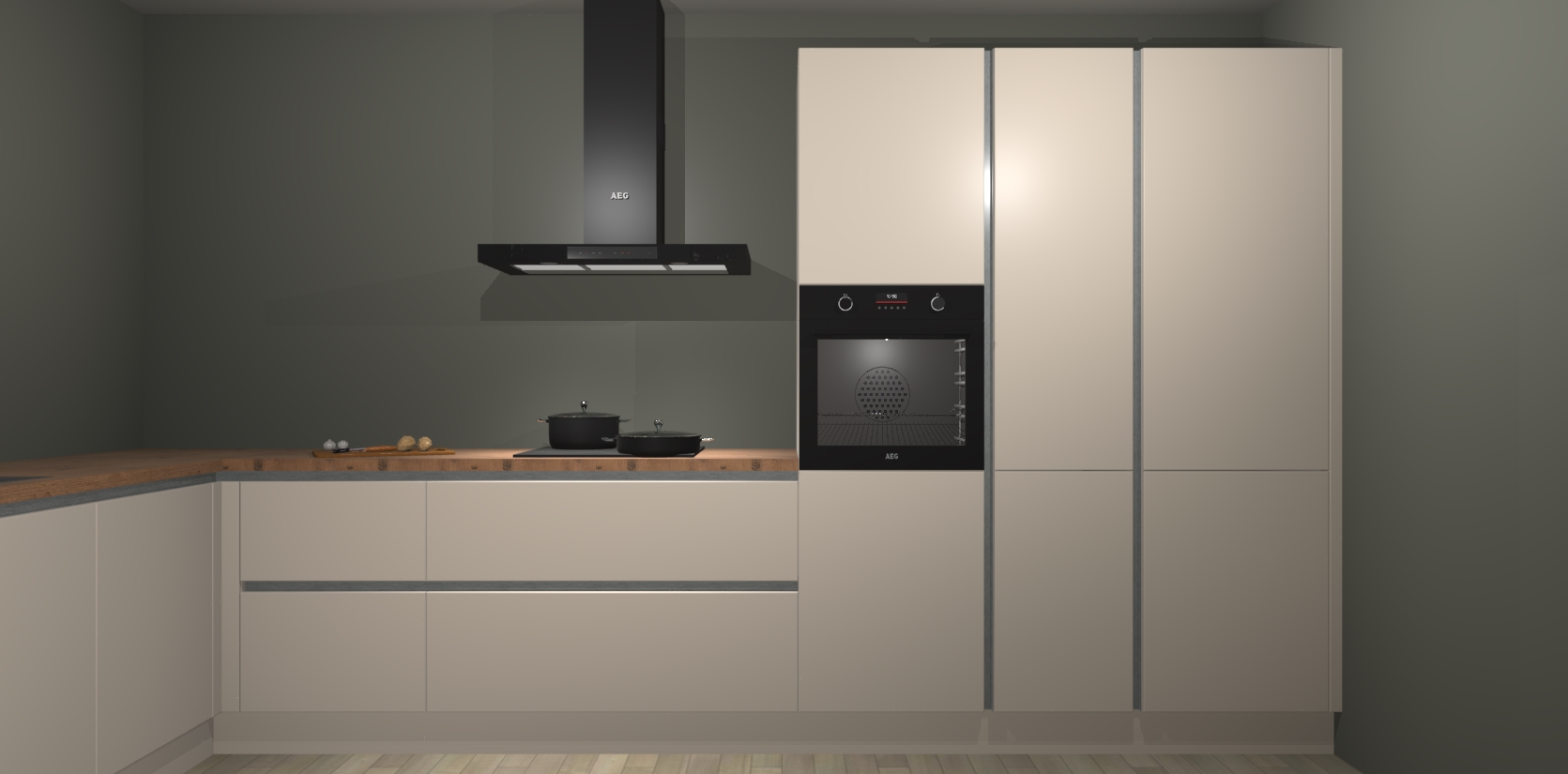 Welkom bij de kasjmier greeploze keuken Nuuk. Deze prachtige keuken zal de komende jaren het middelpunt van de belangstelling in uw huis zijn. Uitgerust met vijf inbouwapparaten komt u nooit kookgereedschap tekort.