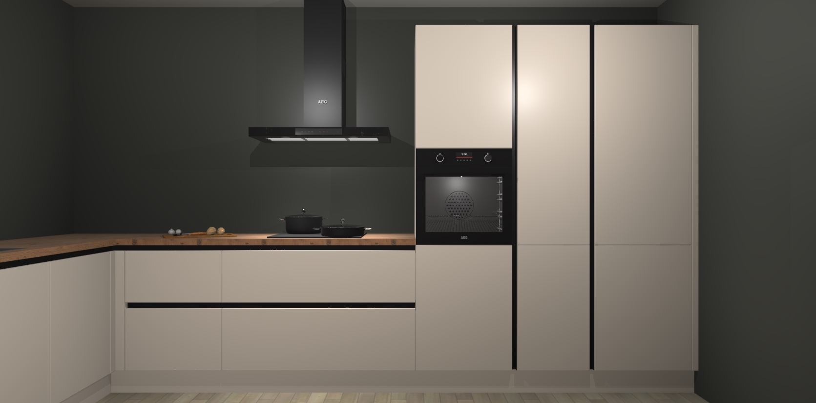 Welkom bij de kasjmier greeploze keuken Nuuk. Deze prachtige keuken zal de komende jaren het middelpunt van de belangstelling in uw huis zijn. Uitgerust met vijf inbouwapparaten komt u nooit kookgereedschap tekort.
