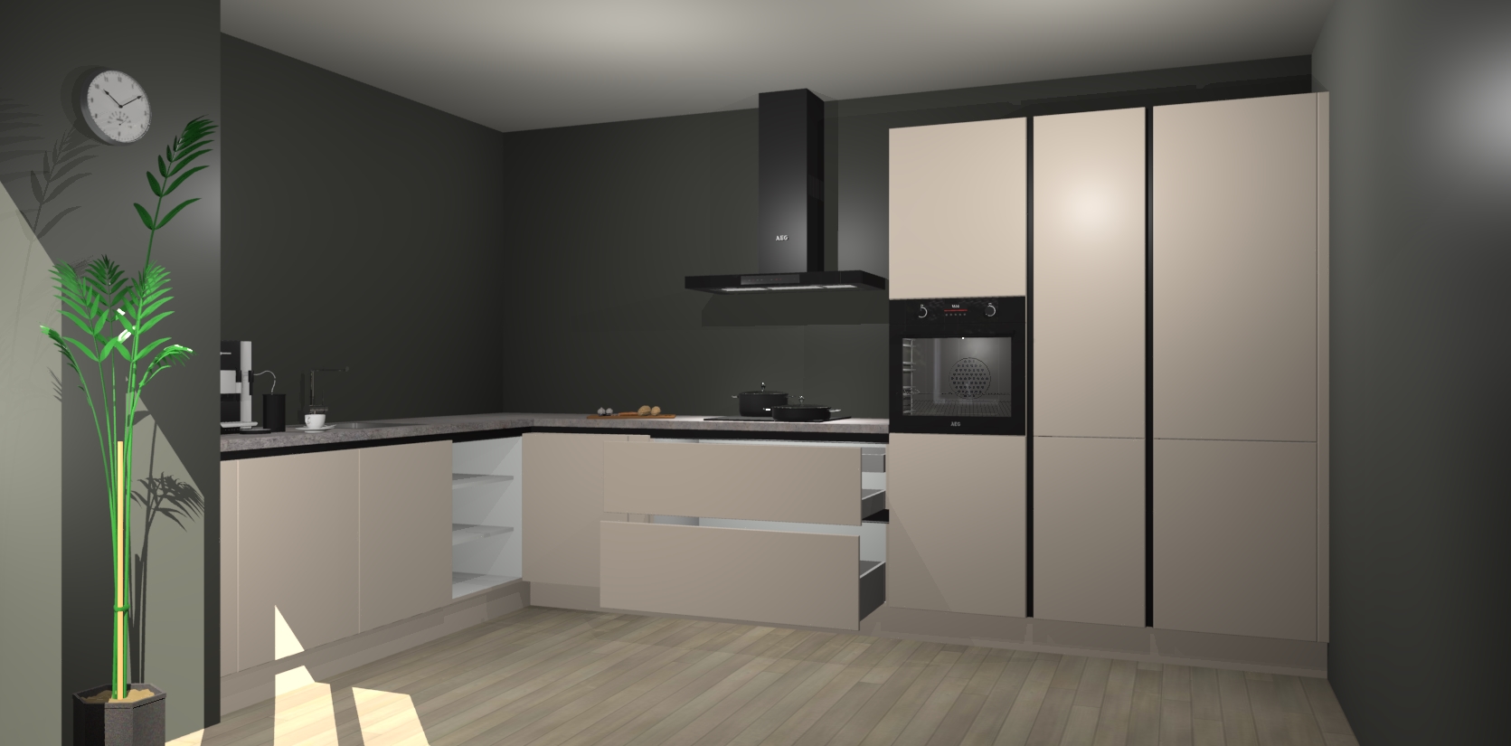 Welkom bij de kasjmier greeploze keuken Nuuk. Deze prachtige keuken zal de komende jaren het middelpunt van de belangstelling in uw huis zijn. Uitgerust met vijf inbouwapparaten komt u nooit kookgereedschap tekort.
