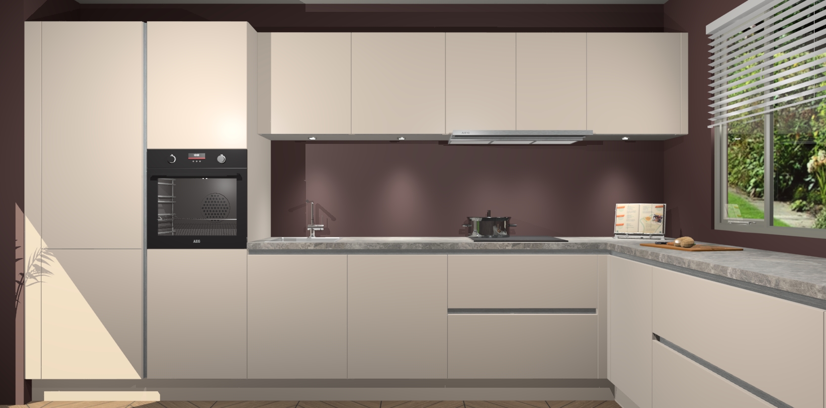 Verwelkom de natuurlijke warmte van de Kasjmier greeploze keuken Petten in uw huis. Deze prachtige hoekkeuken met zijn moderne design en warme houten look geeft u meer dan genoeg opbergruimte om uw comfortabel te voelen in uw keuken. Geniet van soft-close deuren die al uw gasten het gevoel zullen geven dat ze zich in een luxueuze ruimte bevinden.