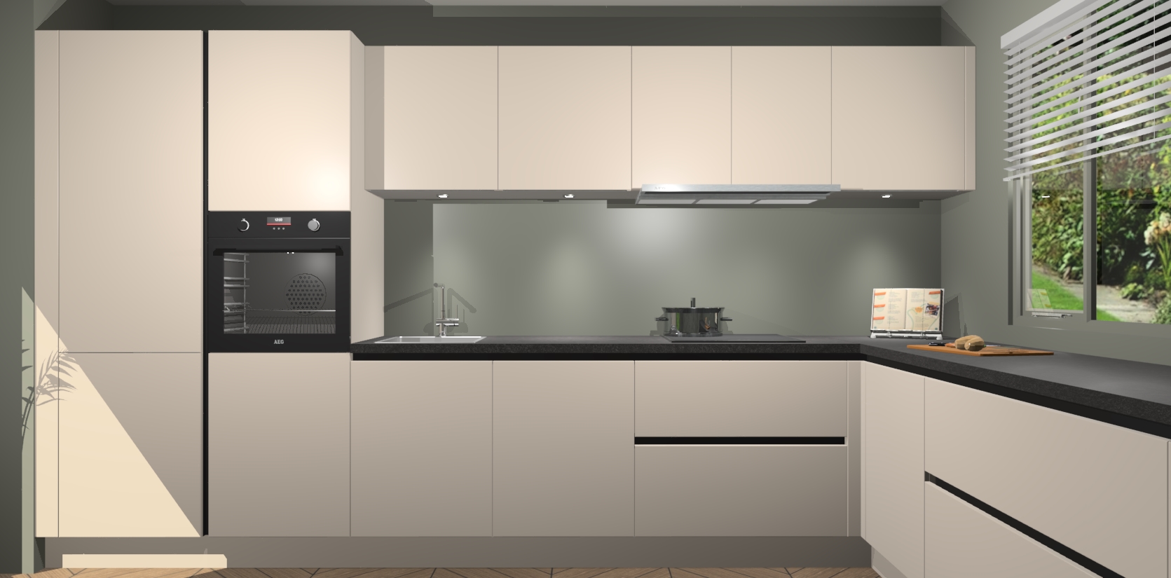Verwelkom de natuurlijke warmte van de Kasjmier greeploze keuken Petten in uw huis. Deze prachtige hoekkeuken met zijn moderne design en warme houten look geeft u meer dan genoeg opbergruimte om uw comfortabel te voelen in uw keuken. Geniet van soft-close deuren die al uw gasten het gevoel zullen geven dat ze zich in een luxueuze ruimte bevinden.