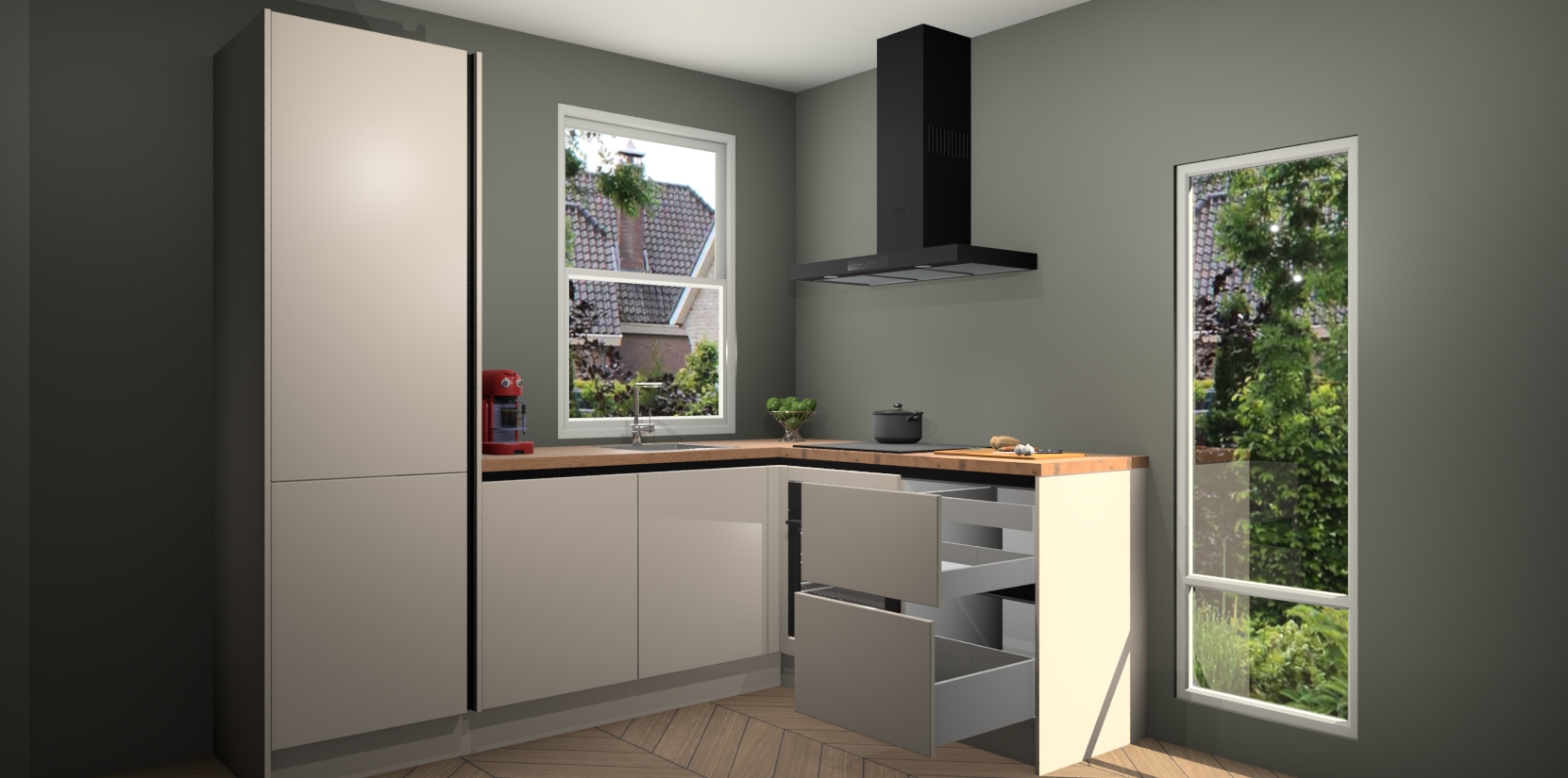 De prachtige Kasjmier greeploze keuken Phuket is de perfecte keuze als u op zoek bent naar een moderne hoekkeuken met alle luxe en comfort die u kunt verwachten! De uitstraling in het houtlook-design draagt bij aan de warme sfeer die u nu al voelt wanneer u er naar kijkt. Heeft u genoeg van ouderwetse keukens? Probeer dan direct deze moderne, mooie hoekkeukens en laat iedereen verbluft achter!