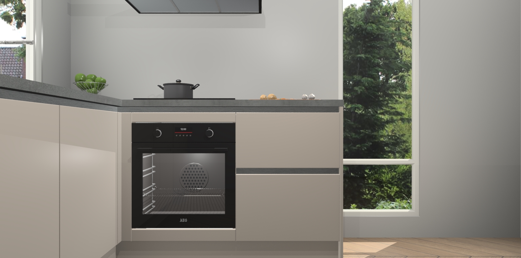 De Kasjmier greeploze keuken Phuket heeft alles wat u maar kunt wensen. Niet alleen zijn er softclose deuren, maar ook 5 ingebouwde apparaten: een oven, inductiekookplaat, afzuigkap, vaatwasser en koelkast - waarbij u later gemakkelijk naar het AEG merk, van inductiekookplaat naar kookplaat met geïntegreerde afzuiging of van oven naar combimagnetron kunt upgraden. Dat alles tegen een vast laag tarief! Bovendien geeft de Kasjmier greeploze keuken Phuket supersnelle levering van 7 weken. Echt iets voor u als u er niet op wilt wachten om het resultaat te zien in eigen keuken!