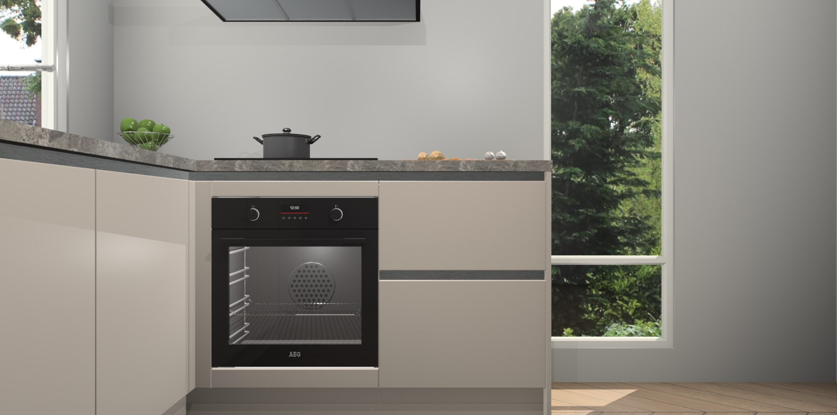 De Kasjmier greeploze keuken Phuket heeft alles wat u maar kunt wensen. Niet alleen zijn er softclose deuren, maar ook 5 ingebouwde apparaten: een oven, inductiekookplaat, afzuigkap, vaatwasser en koelkast - waarbij u later gemakkelijk naar het AEG merk, van inductiekookplaat naar kookplaat met geïntegreerde afzuiging of van oven naar combimagnetron kunt upgraden. Dat alles tegen een vast laag tarief! Bovendien geeft de Kasjmier greeploze keuken Phuket supersnelle levering van 7 weken. Echt iets voor u als u er niet op wilt wachten om het resultaat te zien in eigen keuken!