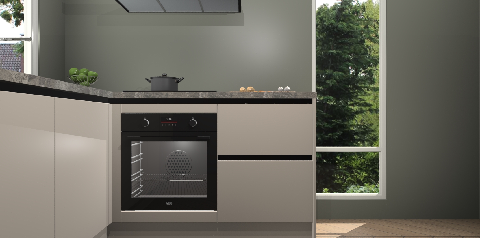 De Kasjmier greeploze keuken Phuket heeft alles wat u maar kunt wensen. Niet alleen zijn er softclose deuren, maar ook 5 ingebouwde apparaten: een oven, inductiekookplaat, afzuigkap, vaatwasser en koelkast - waarbij u later gemakkelijk naar het AEG merk, van inductiekookplaat naar kookplaat met geïntegreerde afzuiging of van oven naar combimagnetron kunt upgraden. Dat alles tegen een vast laag tarief! Bovendien geeft de Kasjmier greeploze keuken Phuket supersnelle levering van 7 weken. Echt iets voor u als u er niet op wilt wachten om het resultaat te zien in eigen keuken!