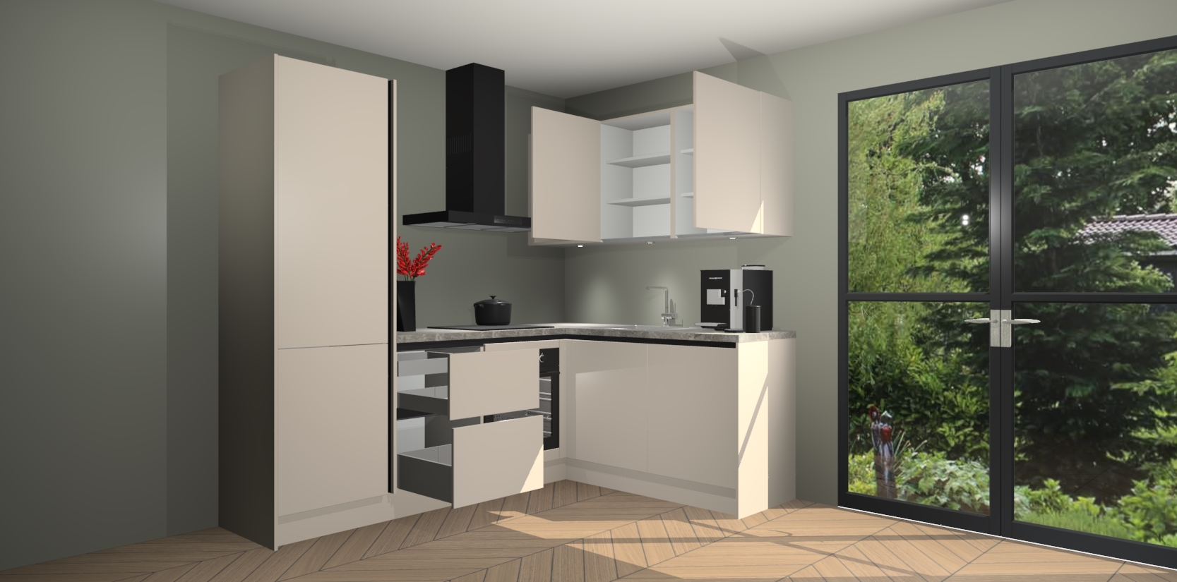 In deze box zijn alle kleuren verzameld van de deuren en werkbladen. Vraag de gratis kleurenbox aan en kijk thuis rustig verder!