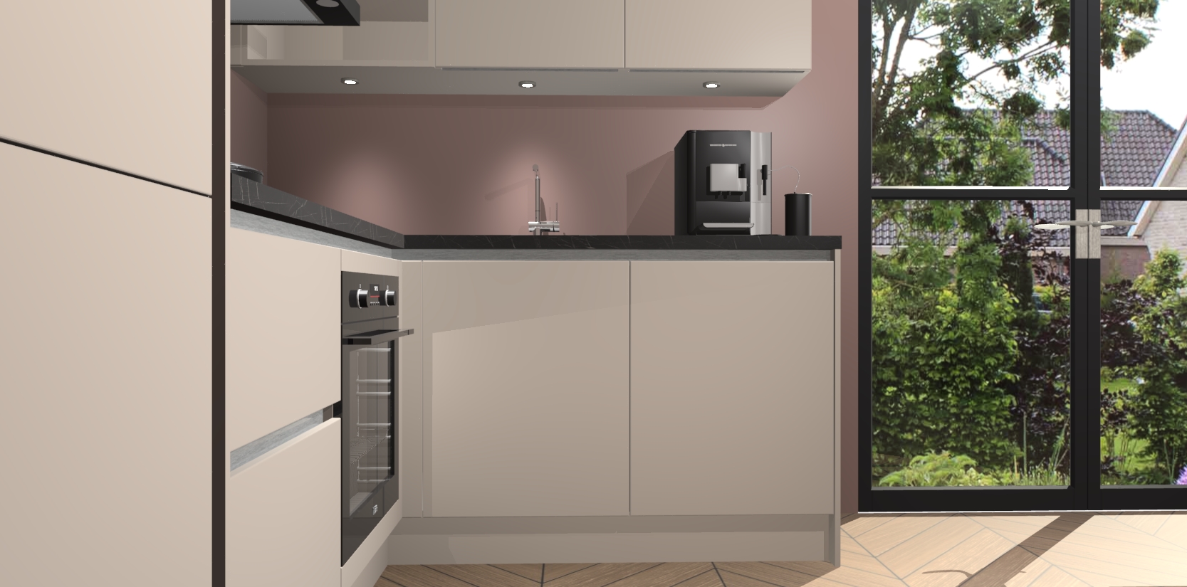 Wauw, dit is de Kasjmier greeploze keuken Pilsen! U kunt gerust zeggen dat u elegantie combineert met functionaliteit met deze keuken. Met een modern en chique ontwerp is de keuken precies wat u nodig heeft om uw ruimte te verfraaien. De binnenzijde van de kasten is in dezelfde donkere kleur als de buitenzijde voor een uniforme look, compleet met softclose-kasten die stil sluiten.