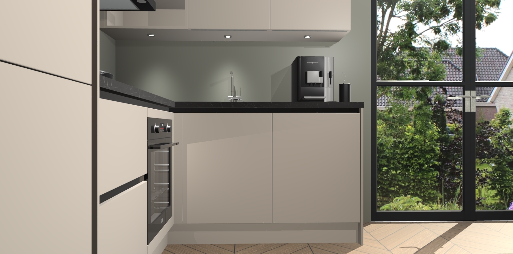 Wauw, dit is de Kasjmier greeploze keuken Pilsen! U kunt gerust zeggen dat u elegantie combineert met functionaliteit met deze keuken. Met een modern en chique ontwerp is de keuken precies wat u nodig heeft om uw ruimte te verfraaien. De binnenzijde van de kasten is in dezelfde donkere kleur als de buitenzijde voor een uniforme look, compleet met softclose-kasten die stil sluiten.