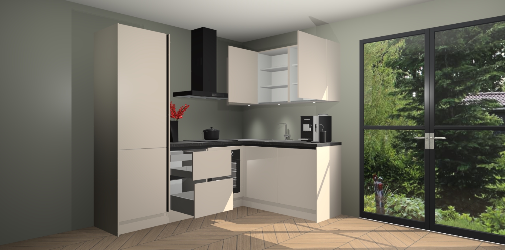 In deze box zijn alle kleuren verzameld van de deuren en werkbladen. Vraag de gratis kleurenbox aan en kijk thuis rustig verder!