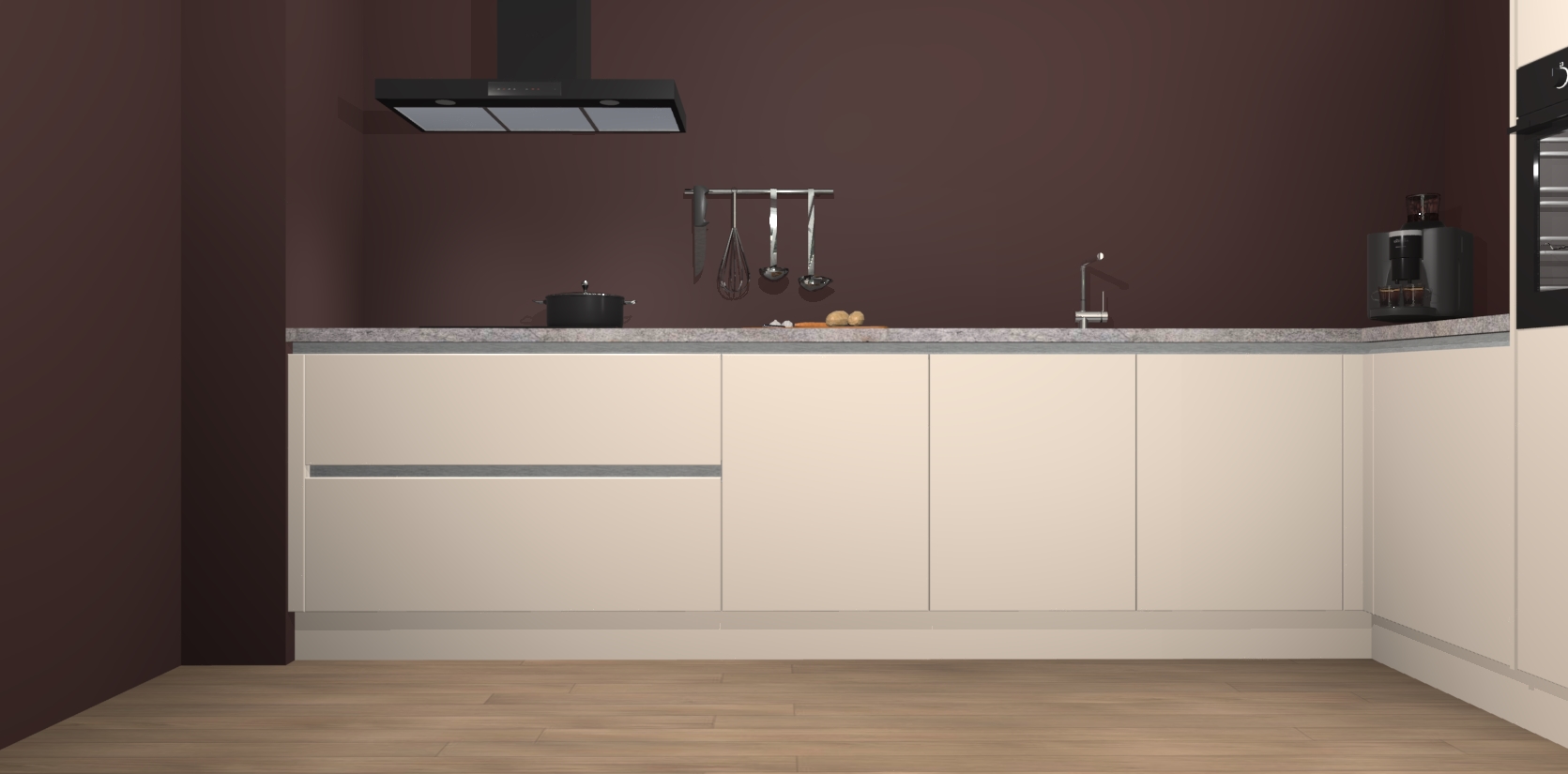 Inclusief plinten, stelpoten en werkblad