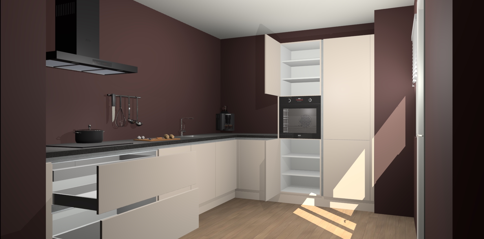 Inclusief plinten, stelpoten en werkblad
