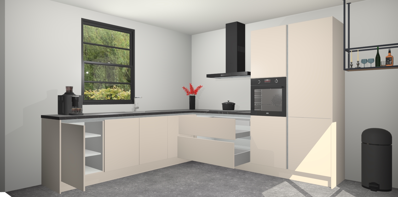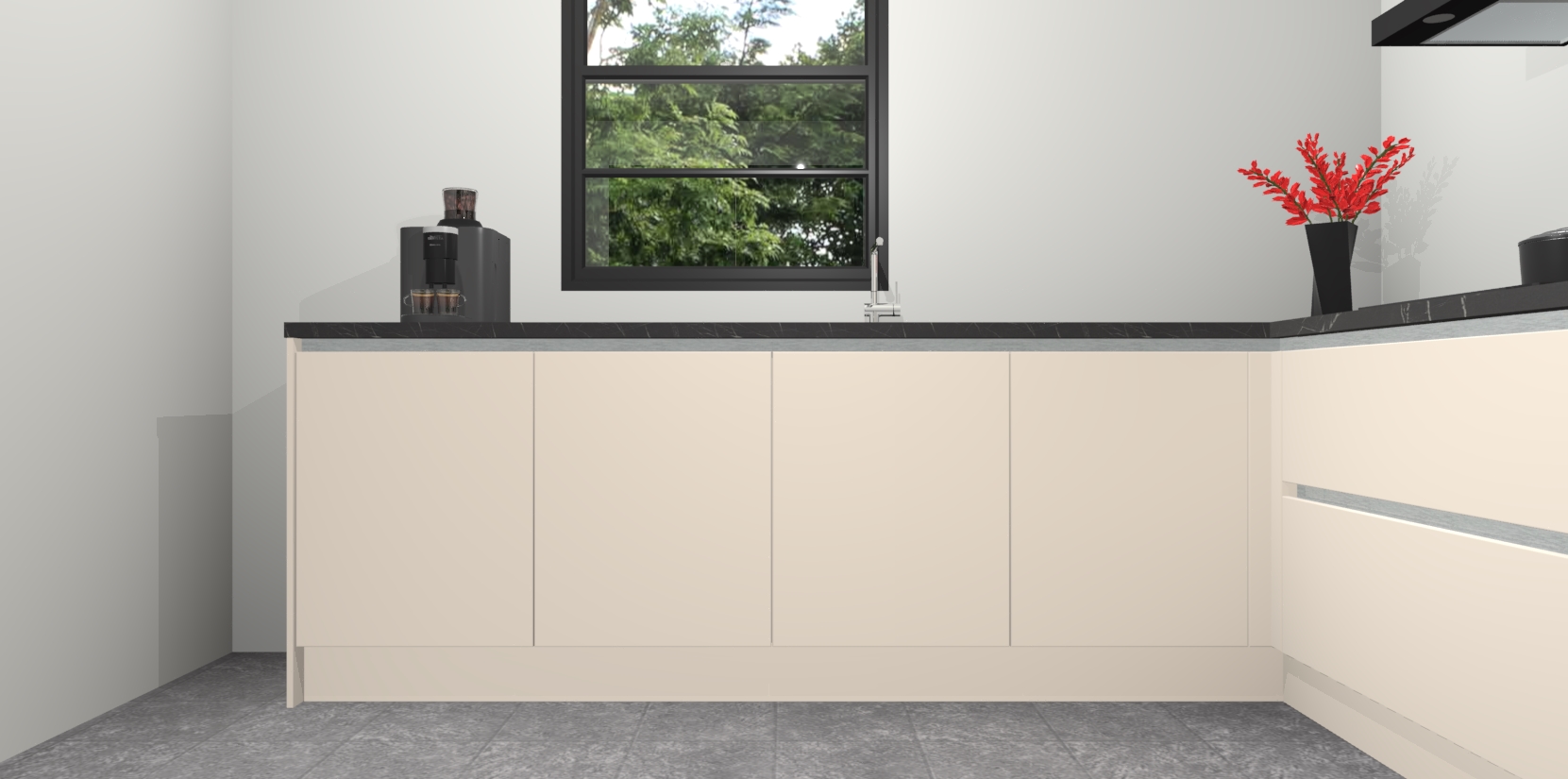 De Kasjmier greeploze keuken Porto heeft 5 ingebouwde apparaten - een oven, inductiekookplaat, afzuigkap, vaatwasser en koelkast - waarmee u in een handomdraai heerlijke gerechten bereidt. Soft-close deuren zorgen voor nog meer functionaliteit en gemak. En dit alles voor een onverslaanbaar vaste prijs. En als u nu bestelt, duurt de levering maar 7 weken! Wat nog ongelooflijker is, is dat onze kasten voor gemonteerd worden geleverd.