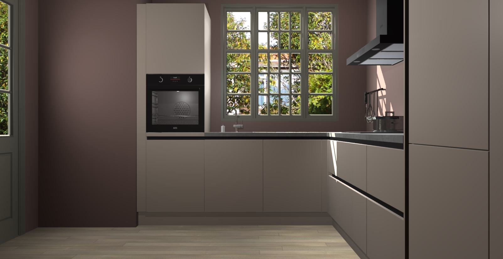 Met een modern, tijdloos design en ruime opslagruimte, zult u zich in no-time thuis voelen in uw nieuwe keuken. Uw leven wordt eenvoudiger met de soft-close deuren die voor het ultieme stille comfort zorgen - geen geluid dat u stoort terwijl u kookt. Ook is de keuken voorzien van 5 ingebouwde apparaten: een oven, inductie kookplaat, afzuigkap, vaatwasser en koelkast. Deze kunnen gemakkelijk na bestelling worden bijgewerkt naar AEG - waardoor uw luxe ervaring compleet is.