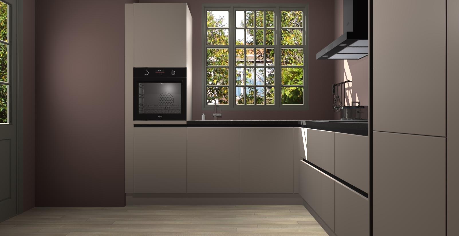 Met een modern, tijdloos design en ruime opslagruimte, zult u zich in no-time thuis voelen in uw nieuwe keuken. Uw leven wordt eenvoudiger met de soft-close deuren die voor het ultieme stille comfort zorgen - geen geluid dat u stoort terwijl u kookt. Ook is de keuken voorzien van 5 ingebouwde apparaten: een oven, inductie kookplaat, afzuigkap, vaatwasser en koelkast. Deze kunnen gemakkelijk na bestelling worden bijgewerkt naar AEG - waardoor uw luxe ervaring compleet is.