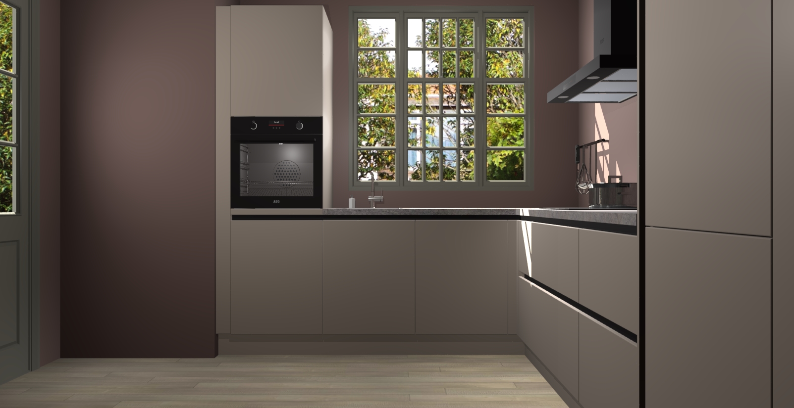 Met een modern, tijdloos design en ruime opslagruimte, zult u zich in no-time thuis voelen in uw nieuwe keuken. Uw leven wordt eenvoudiger met de soft-close deuren die voor het ultieme stille comfort zorgen - geen geluid dat u stoort terwijl u kookt. Ook is de keuken voorzien van 5 ingebouwde apparaten: een oven, inductie kookplaat, afzuigkap, vaatwasser en koelkast. Deze kunnen gemakkelijk na bestelling worden bijgewerkt naar AEG - waardoor uw luxe ervaring compleet is.