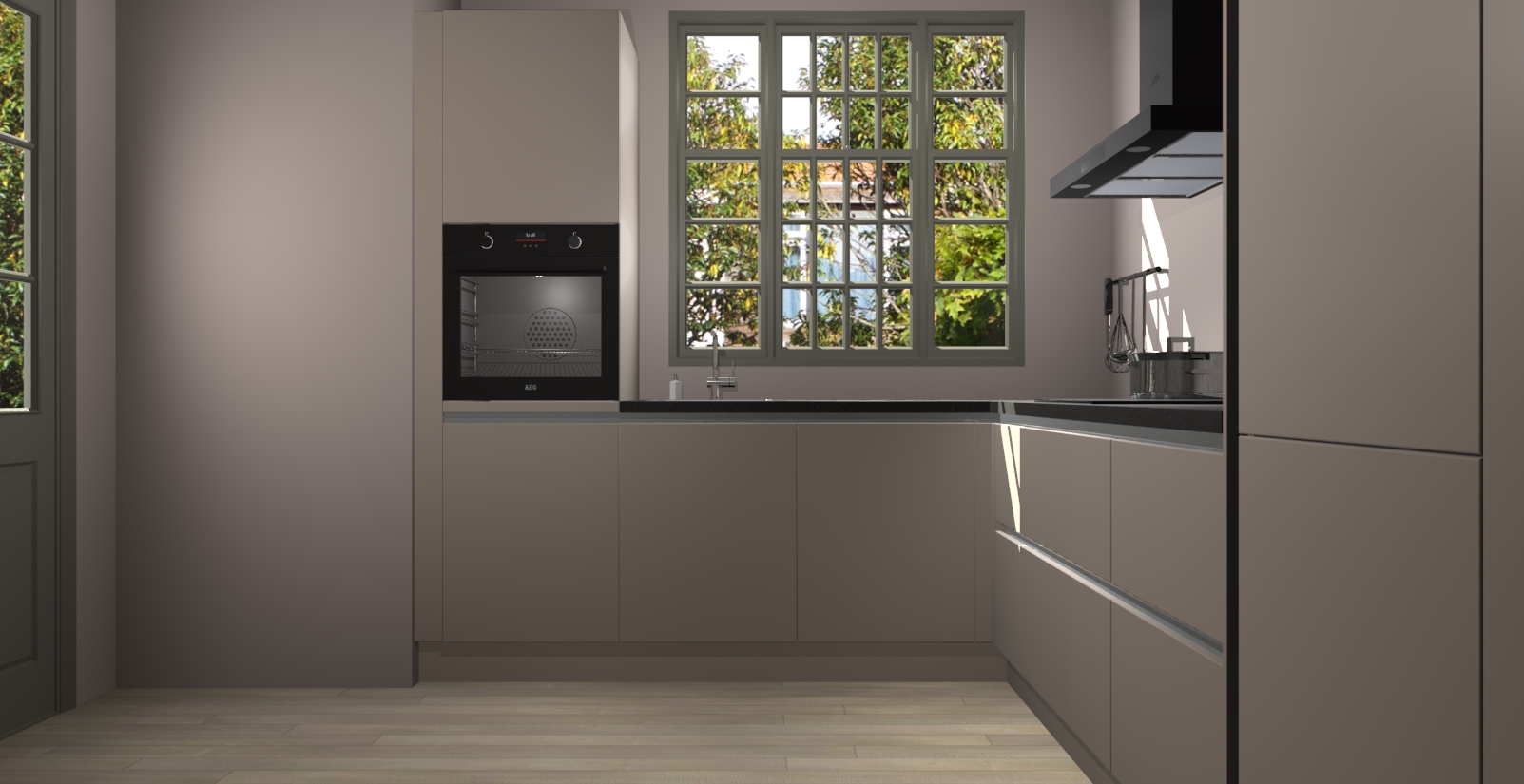 Met een modern, tijdloos design en ruime opslagruimte, zult u zich in no-time thuis voelen in uw nieuwe keuken. Uw leven wordt eenvoudiger met de soft-close deuren die voor het ultieme stille comfort zorgen - geen geluid dat u stoort terwijl u kookt. Ook is de keuken voorzien van 5 ingebouwde apparaten: een oven, inductie kookplaat, afzuigkap, vaatwasser en koelkast. Deze kunnen gemakkelijk na bestelling worden bijgewerkt naar AEG - waardoor uw luxe ervaring compleet is.