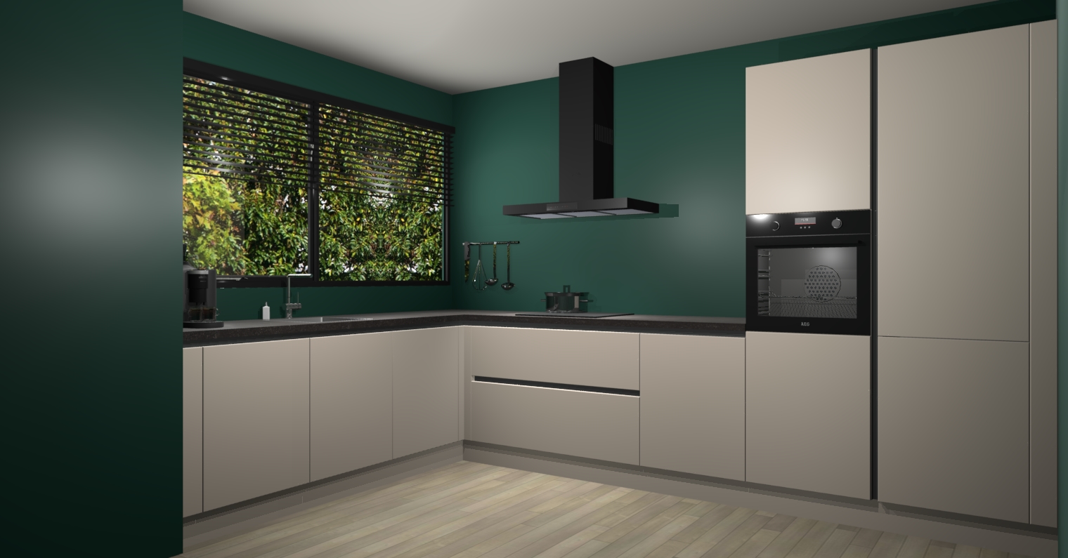 Met een modern, tijdloos design en ruime opslagruimte, zult u zich in no-time thuis voelen in uw nieuwe keuken. Uw leven wordt eenvoudiger met de soft-close deuren die voor het ultieme stille comfort zorgen - geen geluid dat u stoort terwijl u kookt. Ook is de keuken voorzien van 5 ingebouwde apparaten: een oven, inductie kookplaat, afzuigkap, vaatwasser en koelkast. Deze kunnen gemakkelijk na bestelling worden bijgewerkt naar AEG - waardoor uw luxe ervaring compleet is.