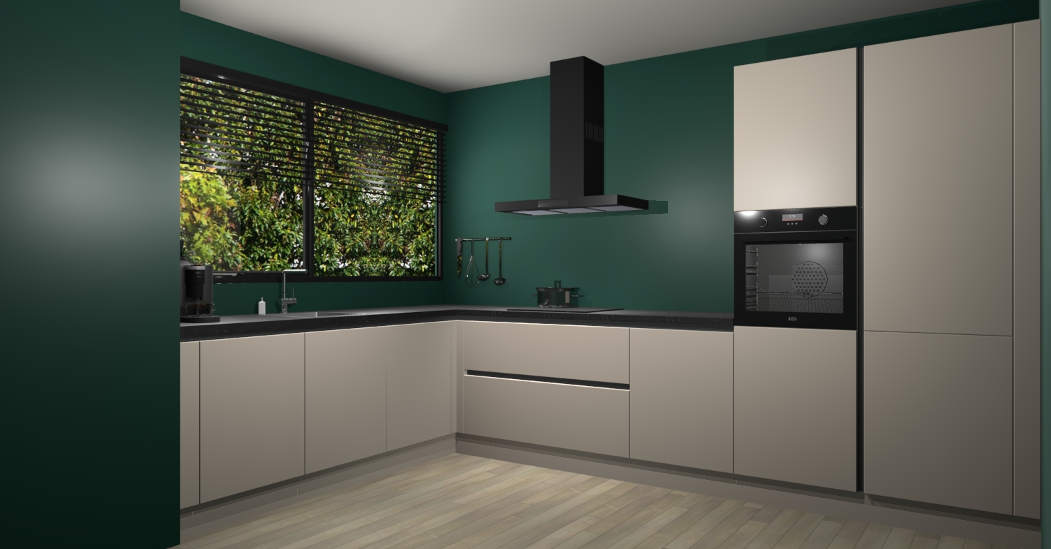 Met een modern, tijdloos design en ruime opslagruimte, zult u zich in no-time thuis voelen in uw nieuwe keuken. Uw leven wordt eenvoudiger met de soft-close deuren die voor het ultieme stille comfort zorgen - geen geluid dat u stoort terwijl u kookt. Ook is de keuken voorzien van 5 ingebouwde apparaten: een oven, inductie kookplaat, afzuigkap, vaatwasser en koelkast. Deze kunnen gemakkelijk na bestelling worden bijgewerkt naar AEG - waardoor uw luxe ervaring compleet is.