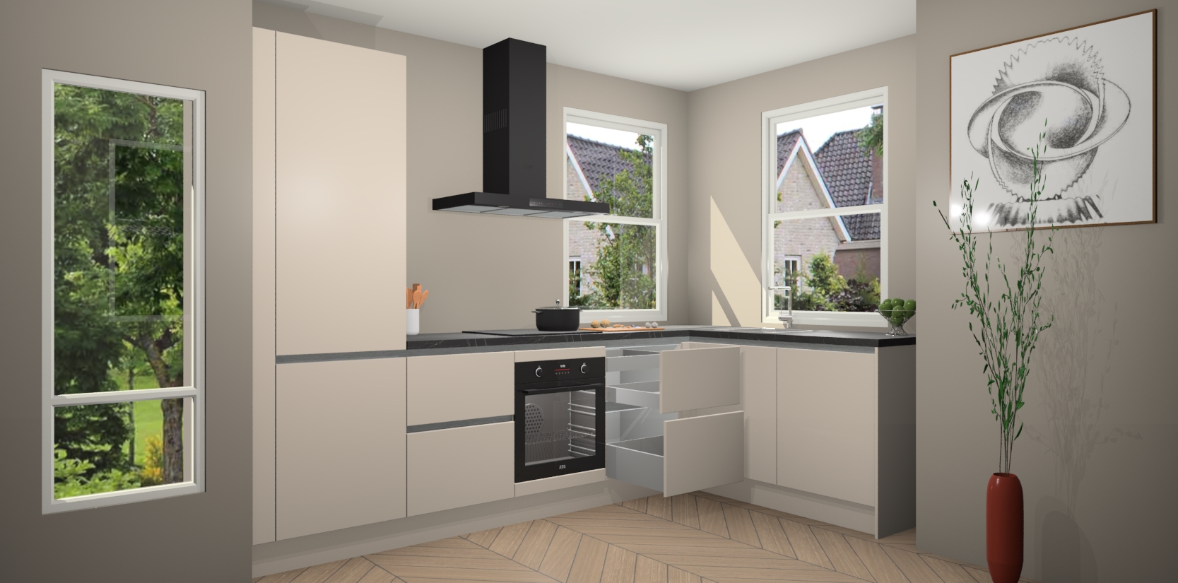 Inclusief plinten, stelpoten en werkblad