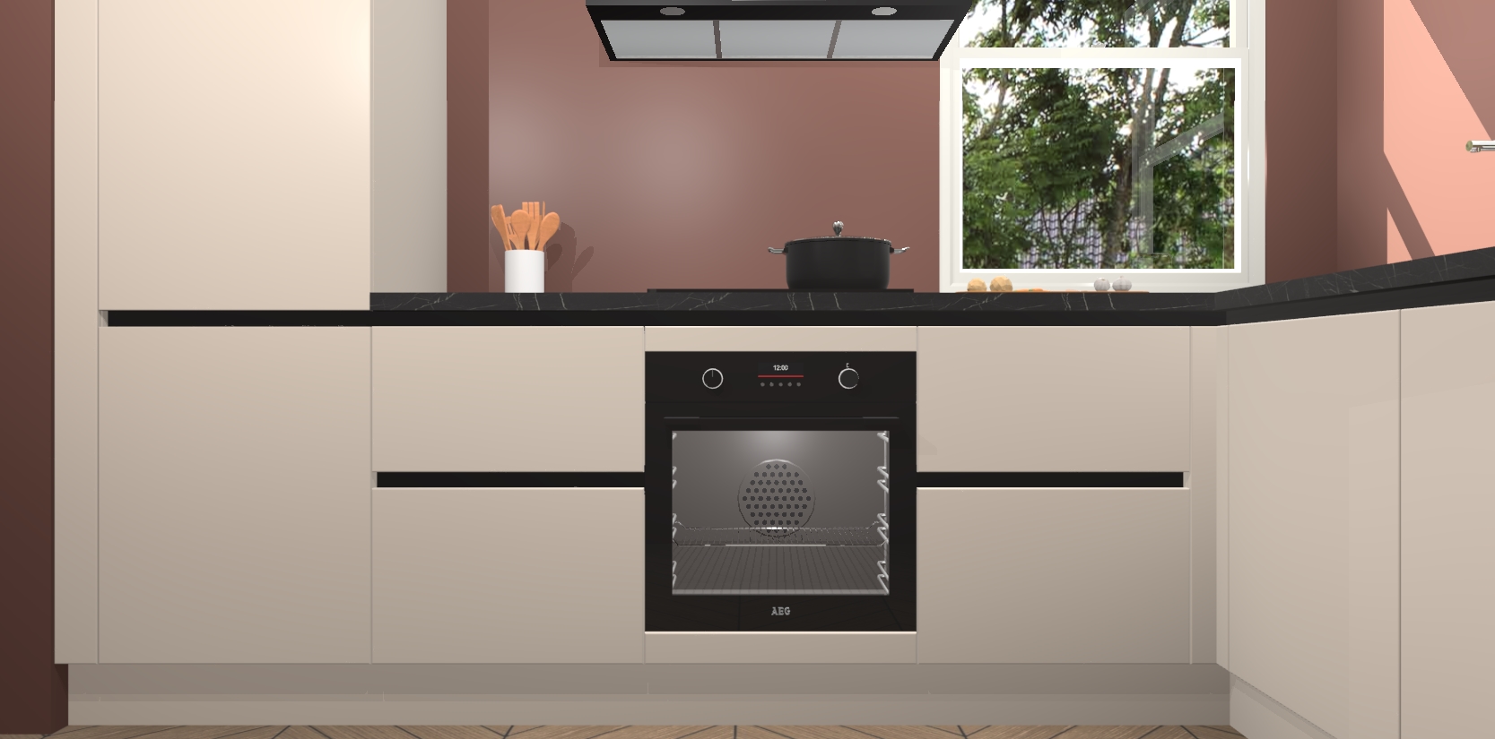 Wat maakt deze keuken zo bijzonder? Ten eerste geeft het houten werkblad uw ruimte een onmiskenbaar klassieke uitstraling. De natuurlijke afwerking roept warmte en elegantie op die nooit uit de mode zullen raken. Bovendien is het gemakkelijk schoon te houden en te onderhouden, zodat je er jarenlang plezier van kunt hebben. Als u op zoek bent naar extra gemak in uw keuken, dan heeft u bij het plaatsen van een bestelling bij ons ook de optie om uw toestellen te upgraden naar AEG-modellen - zo haalt u moderne innovatie van topmerken in apparatentechnologie rechtstreeks in huis.