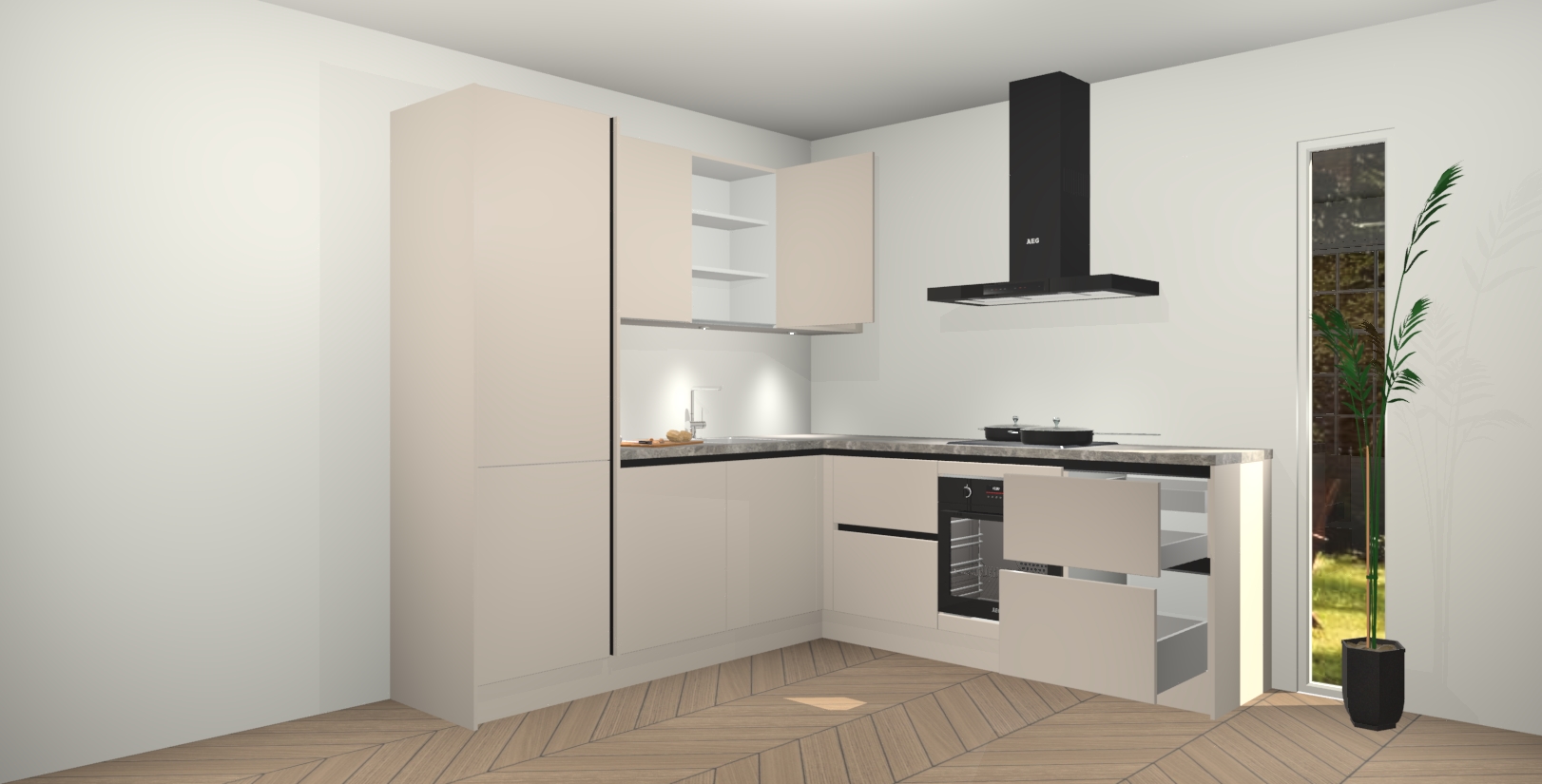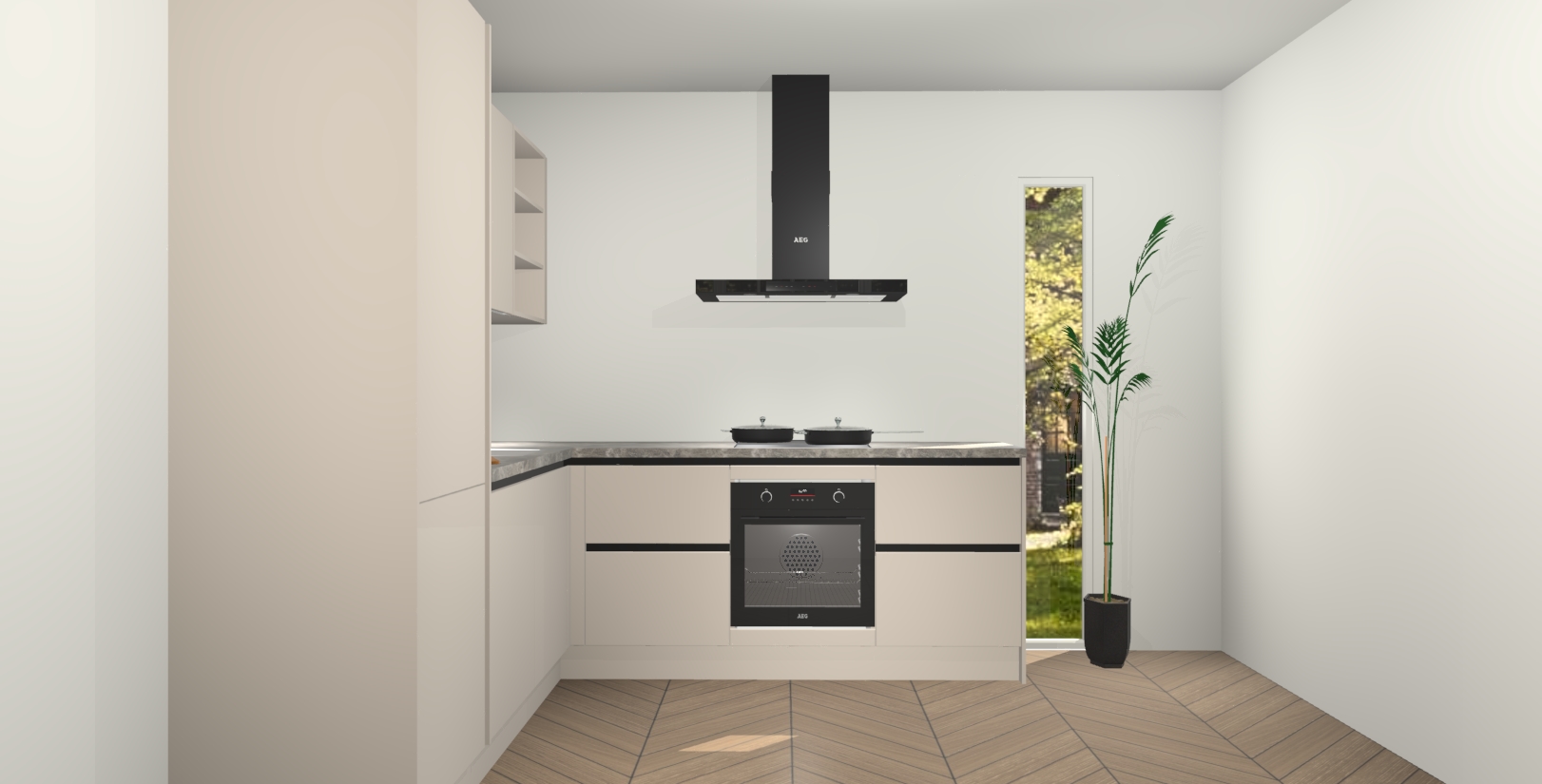 Inclusief plinten, stelpoten en werkblad