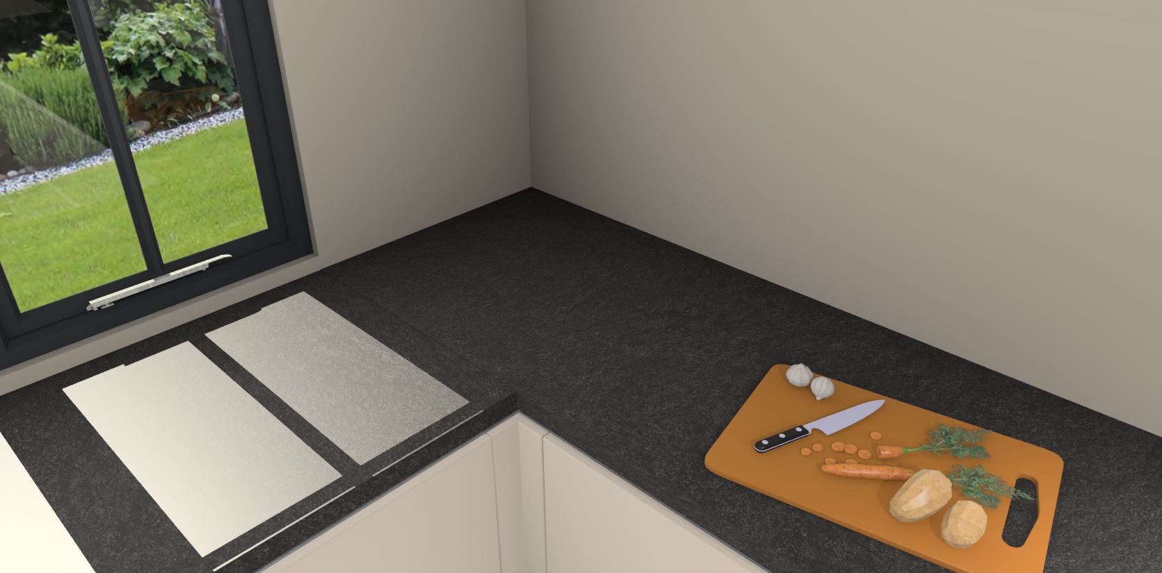 - Bij een hoekwerkblad zijn de hoeken in gevreesd en op maat gemaakt
