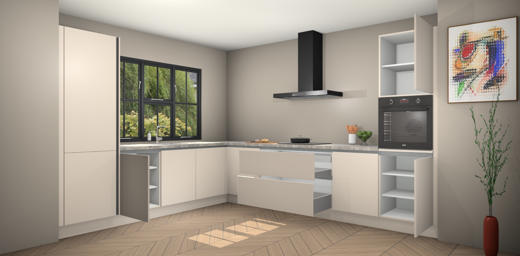In deze box zijn alle kleuren verzameld van de deuren en werkbladen. Vraag de gratis kleurenbox aan en kijk thuis rustig verder!