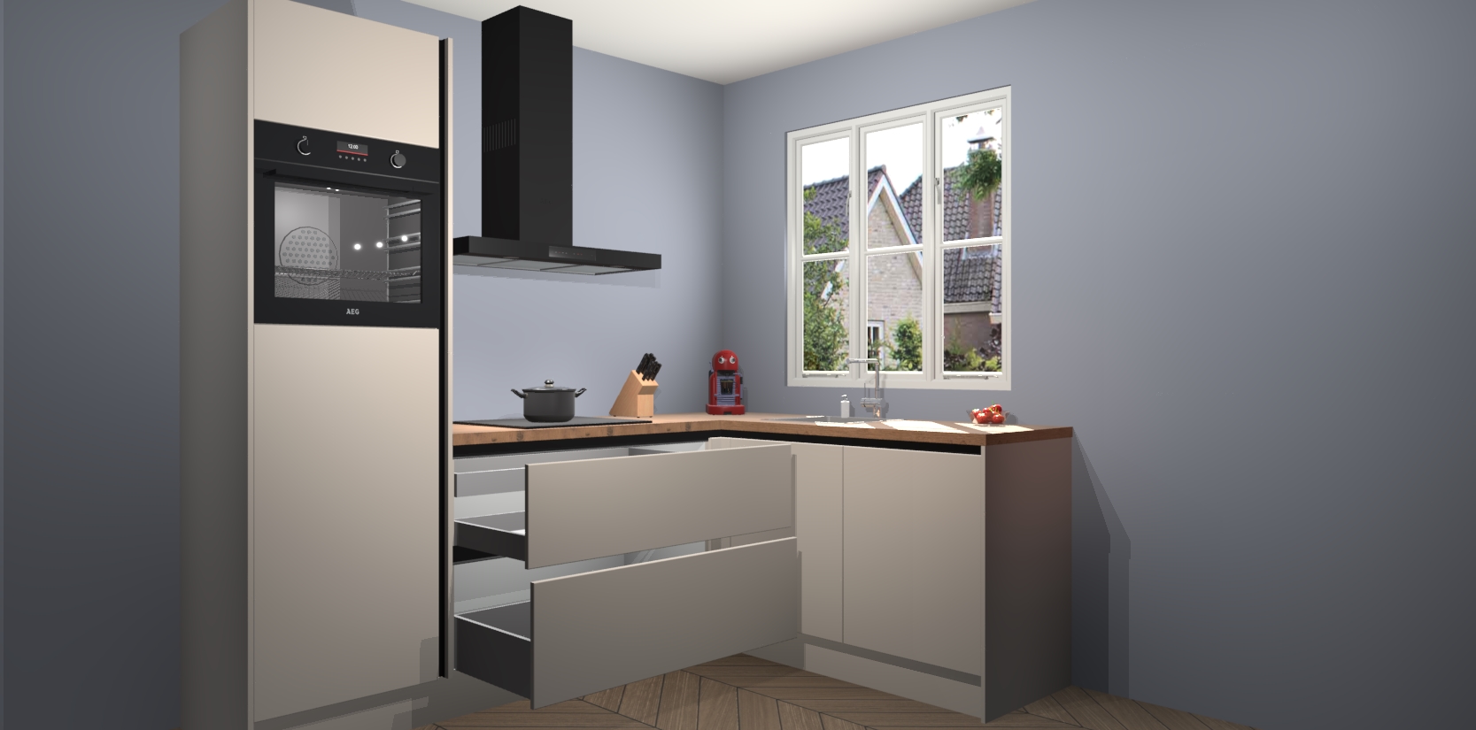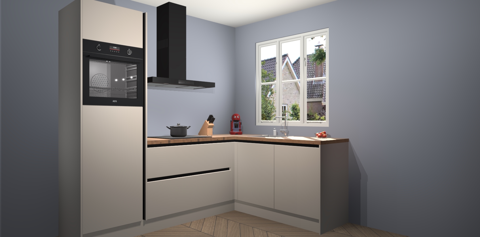 Dit model biedt u voldoende opbergruimte en vijf ingebouwde apparaten: een oven, inductiekookplaat, afzuigkap, vaatwasser en koelkast. Deze apparaten kunnen gemakkelijk worden geüpgrade naar AEG nadat u besteld heeft. De verschillende laden en kastjes bevatten softclose-deuren waardoor ze gezellig dichtvallen met een geruststellend helemaal geruisloos geluid. En dat is nog niet alles! We garanderen ook dat de prijs altijd laag blijft - dus haal nu uw Kasjmier greeploze keuken Victoria terwijl het kan.