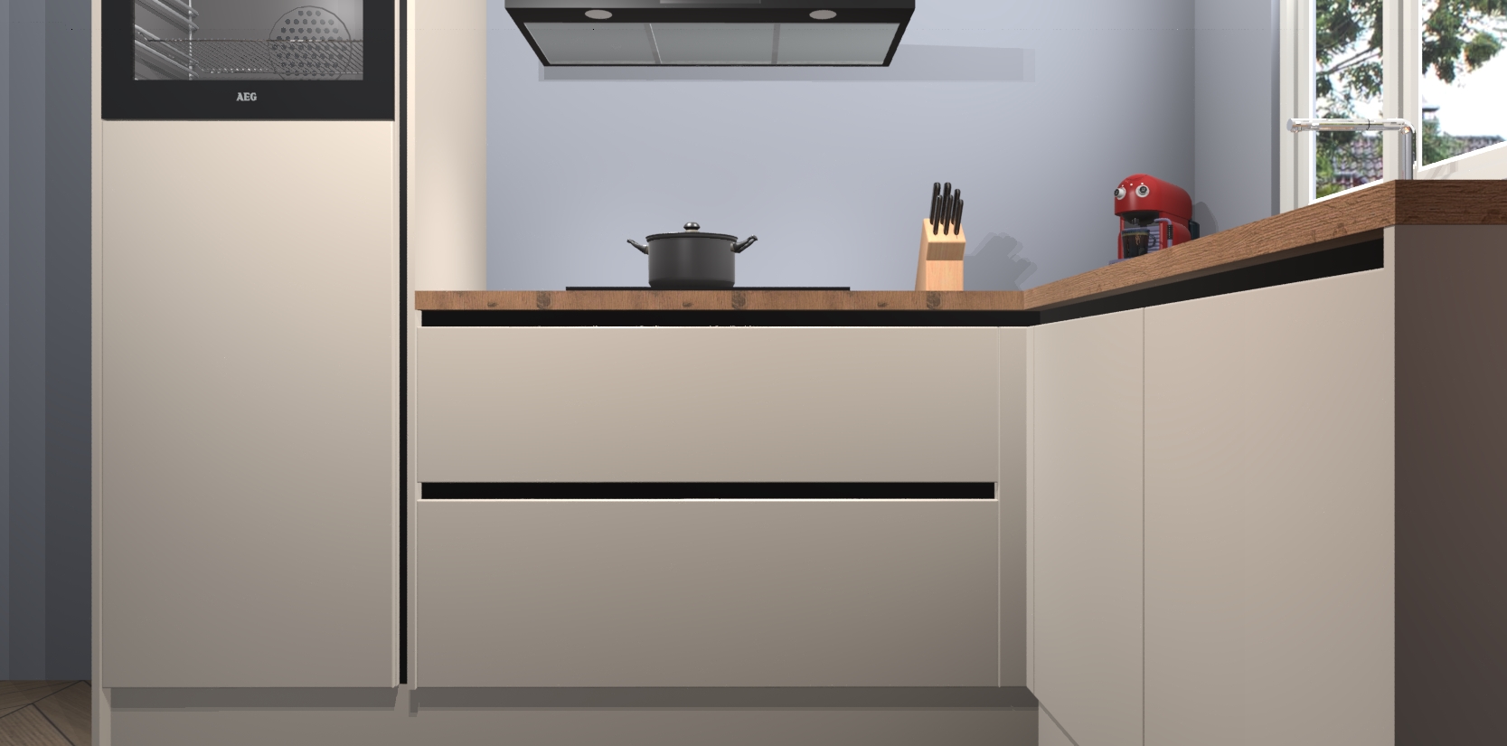 Inclusief plinten, stelpoten en werkblad