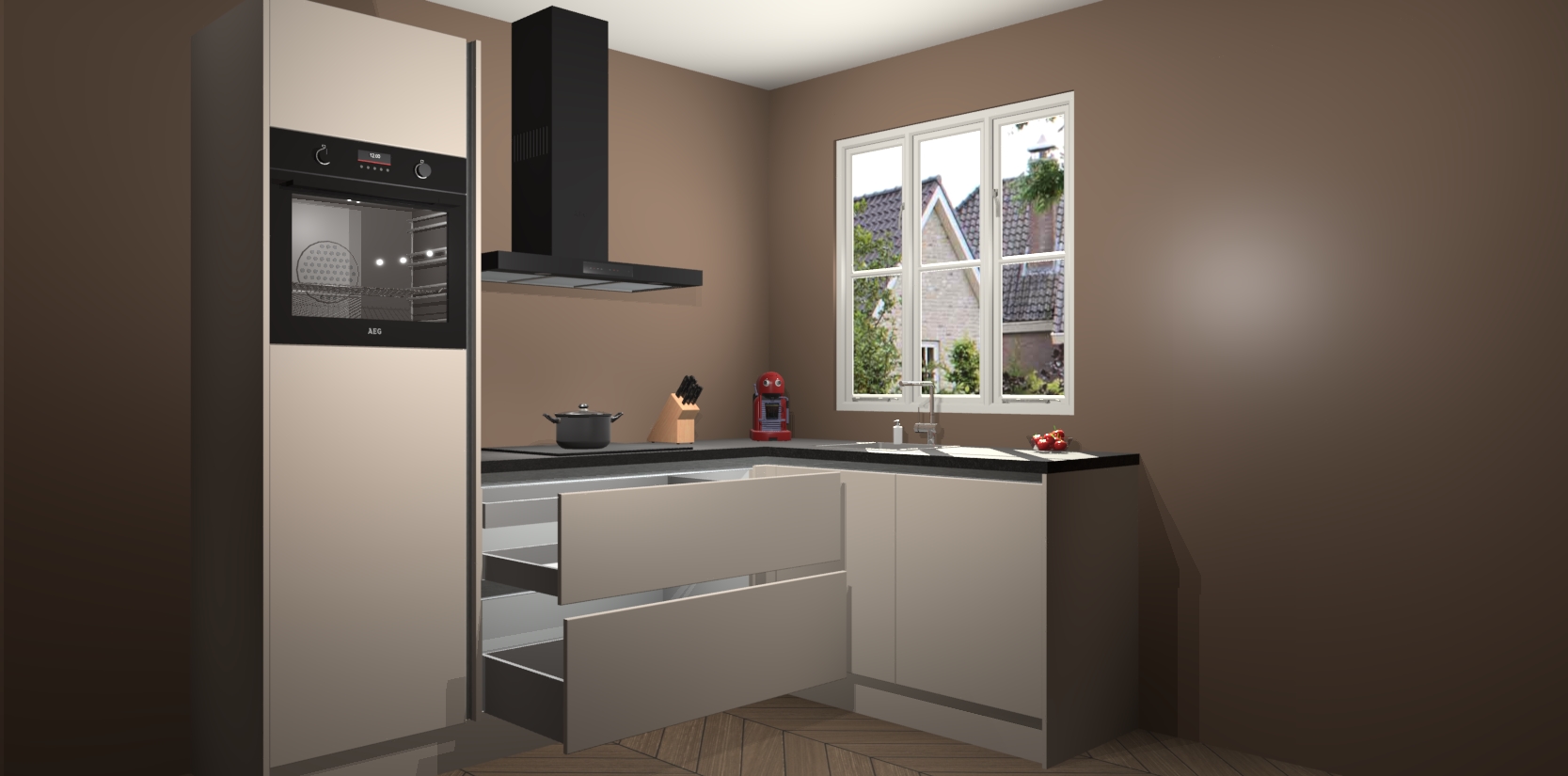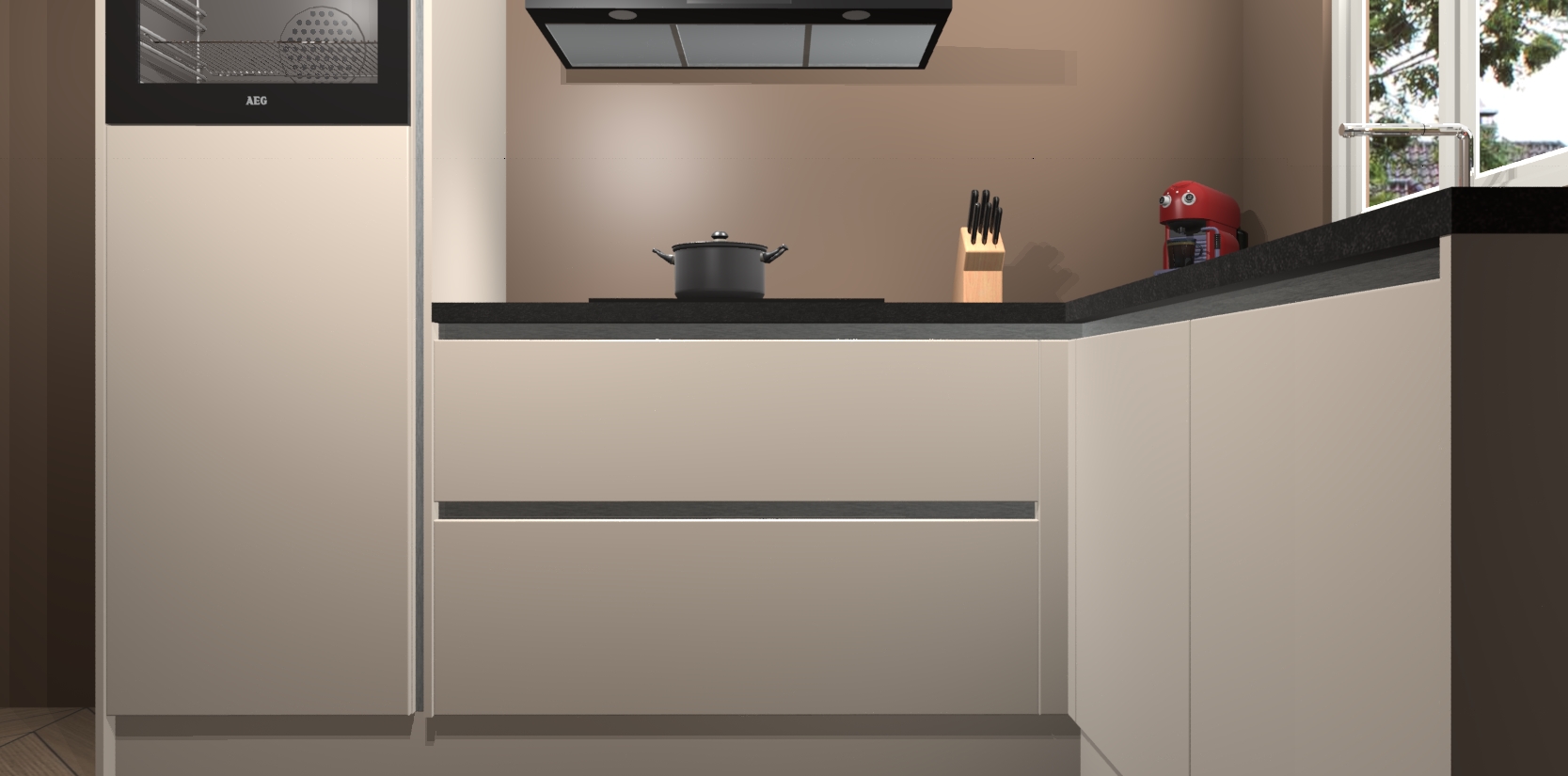 Dit model biedt u voldoende opbergruimte en vijf ingebouwde apparaten: een oven, inductiekookplaat, afzuigkap, vaatwasser en koelkast. Deze apparaten kunnen gemakkelijk worden geüpgrade naar AEG nadat u besteld heeft. De verschillende laden en kastjes bevatten softclose-deuren waardoor ze gezellig dichtvallen met een geruststellend helemaal geruisloos geluid. En dat is nog niet alles! We garanderen ook dat de prijs altijd laag blijft - dus haal nu uw Kasjmier greeploze keuken Victoria terwijl het kan.