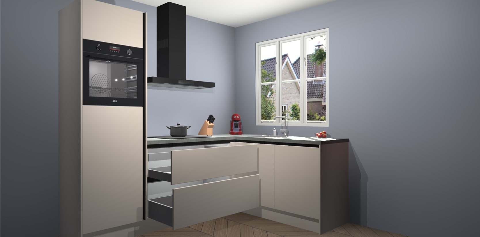 Dit model biedt u voldoende opbergruimte en vijf ingebouwde apparaten: een oven, inductiekookplaat, afzuigkap, vaatwasser en koelkast. Deze apparaten kunnen gemakkelijk worden geüpgrade naar AEG nadat u besteld heeft. De verschillende laden en kastjes bevatten softclose-deuren waardoor ze gezellig dichtvallen met een geruststellend helemaal geruisloos geluid. En dat is nog niet alles! We garanderen ook dat de prijs altijd laag blijft - dus haal nu uw Kasjmier greeploze keuken Victoria terwijl het kan.