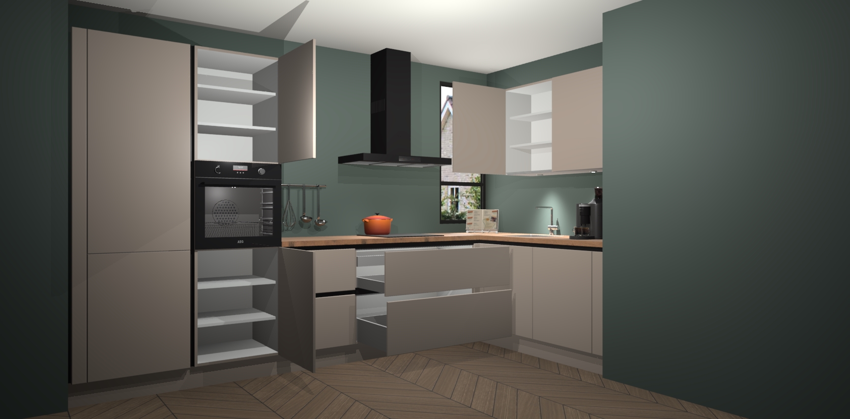 Welkom in uw nieuwe moderne keuken! Laat ons u voorstellen aan de Kasjmier greeploze keuken Vlaanderen. Deze prachtige hoekkeuken straalt exclusiviteit en luxe uit als geen ander. Het strakke design, de tijdloze kleuren en het greeploze model maken van deze keuken een moderne klassieker. En met voldoende opbergruimte heeft deze keuken echt voor ieder wat wils.