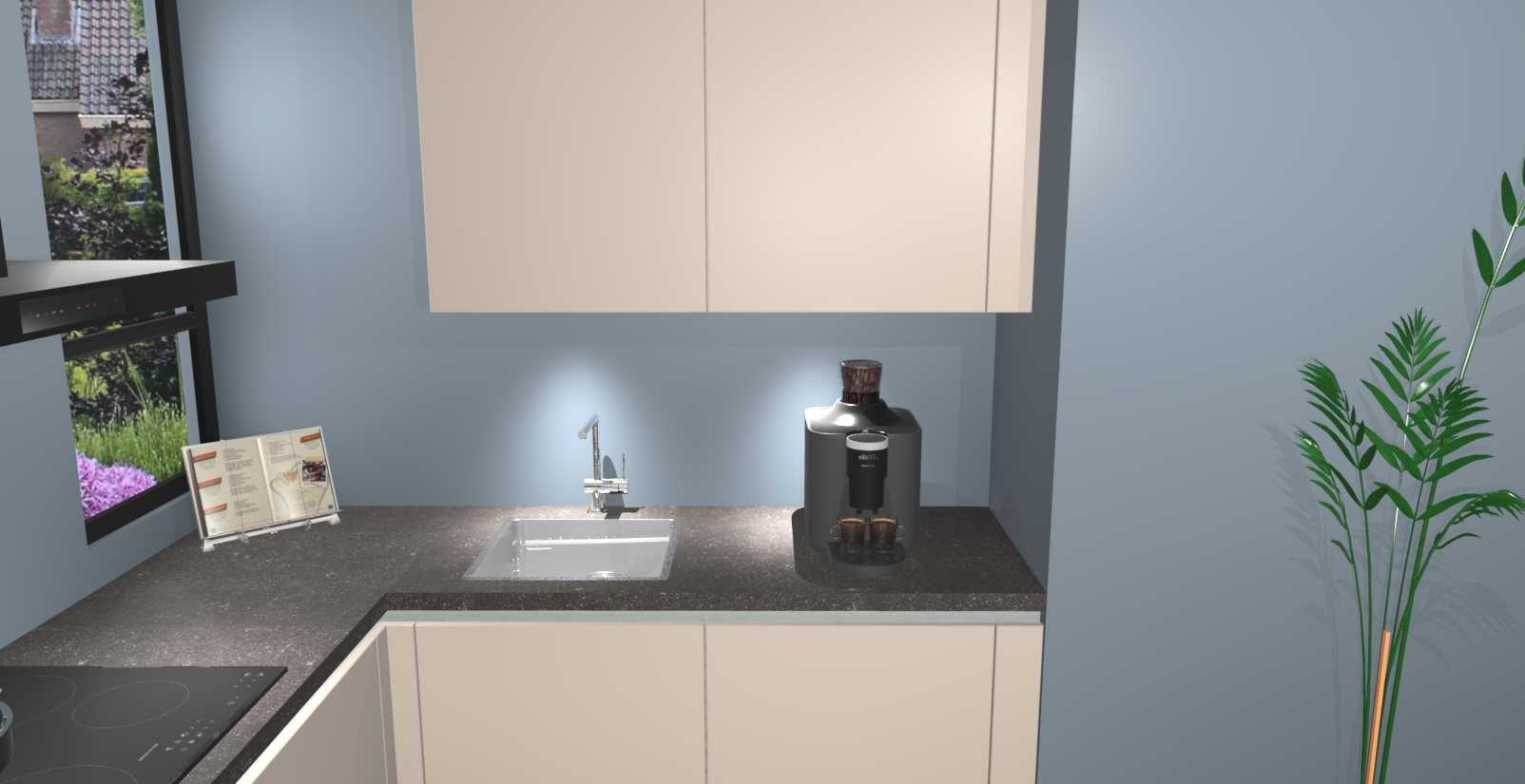 - De spoelbak is nog niet in gevreesd. Dit dient tijdens het werk gedaan te worden