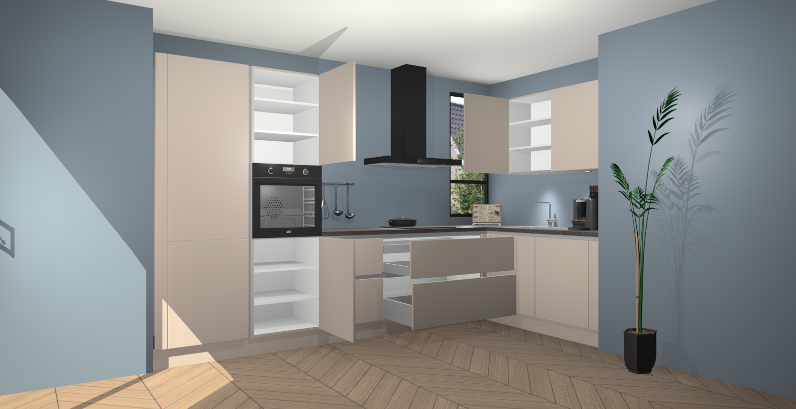 Welkom in uw nieuwe moderne keuken! Laat ons u voorstellen aan de Kasjmier greeploze keuken Vlaanderen . Deze prachtige hoekkeuken straalt exclusiviteit en luxe uit als geen ander. Het strakke design, de tijdloze kleuren en het greeploze model maken van deze keuken een moderne klassieker. En met voldoende opbergruimte heeft deze keuken echt voor ieder wat wils.