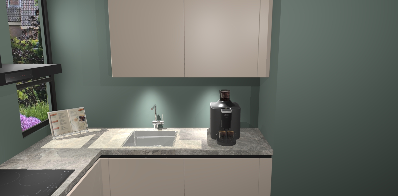 - De spoelbak is nog niet in gevreesd. Dit dient tijdens het werk gedaan te worden