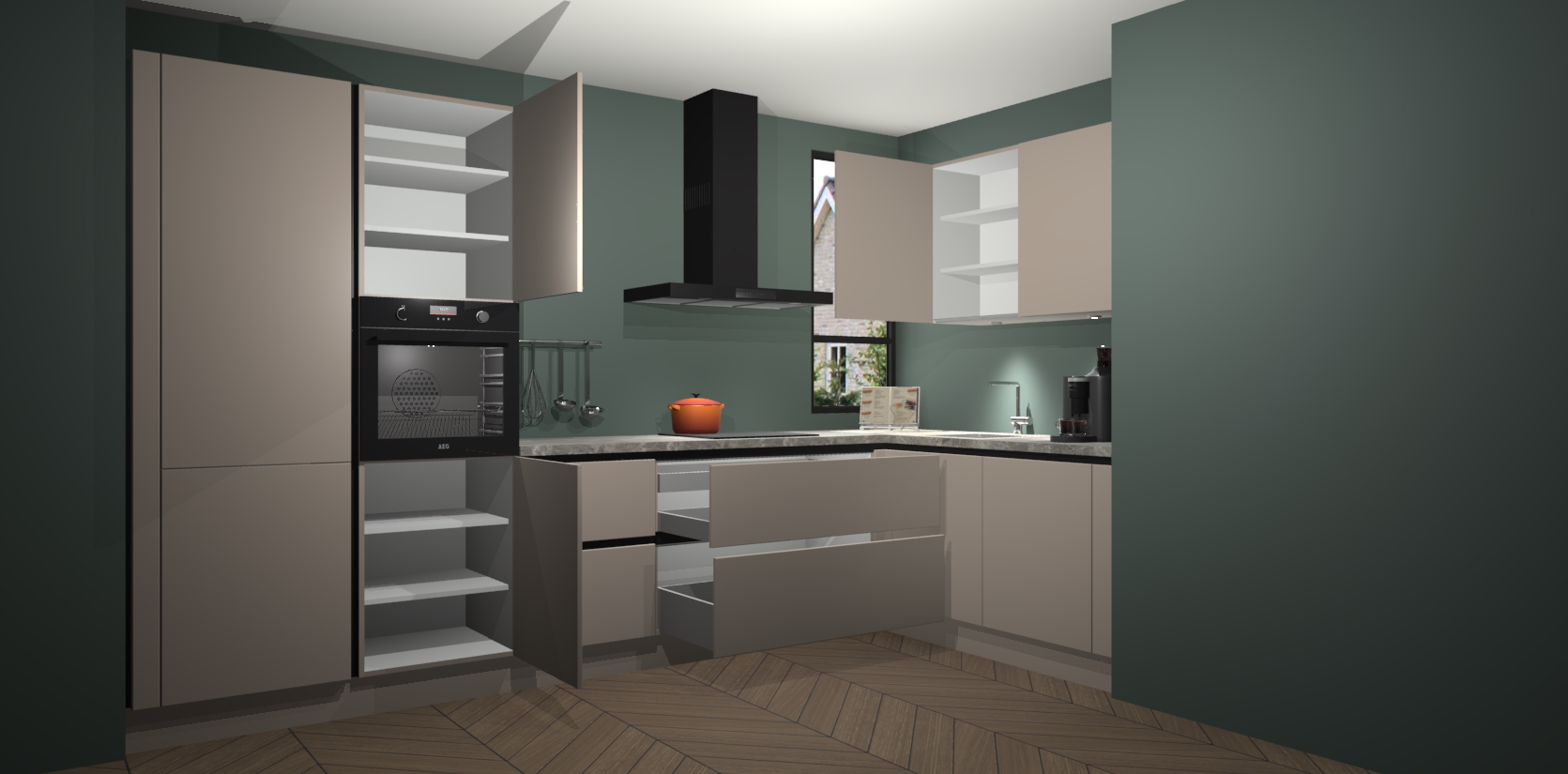 Welkom in uw nieuwe moderne keuken! Laat ons u voorstellen aan de Kasjmier greeploze keuken Vlaanderen. Deze prachtige hoekkeuken straalt exclusiviteit en luxe uit als geen ander. Het strakke design, de tijdloze kleuren en het greeploze model maken van deze keuken een moderne klassieker. En met voldoende opbergruimte heeft deze keuken echt voor ieder wat wils.