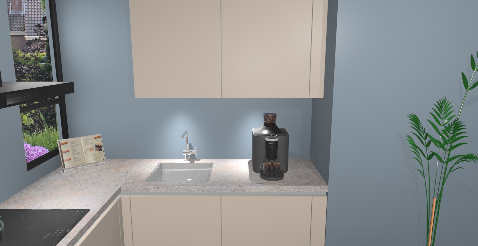 - De spoelbak is nog niet in gevreesd. Dit dient tijdens het werk gedaan te worden