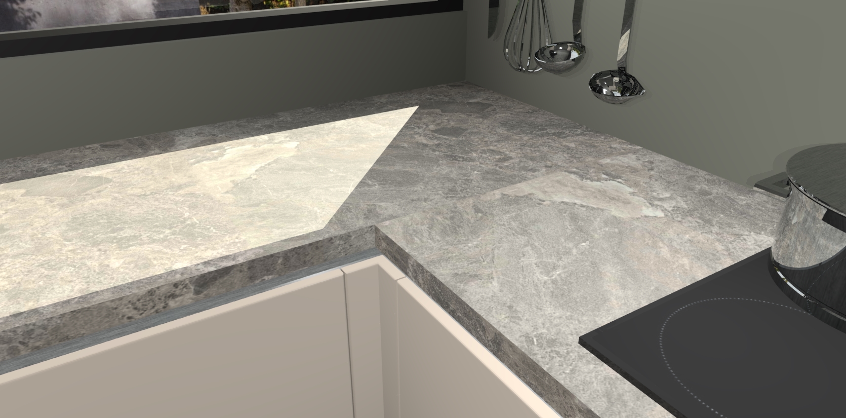 - Bij een hoekwerkblad zijn de hoeken in gevreesd en op maat gemaakt