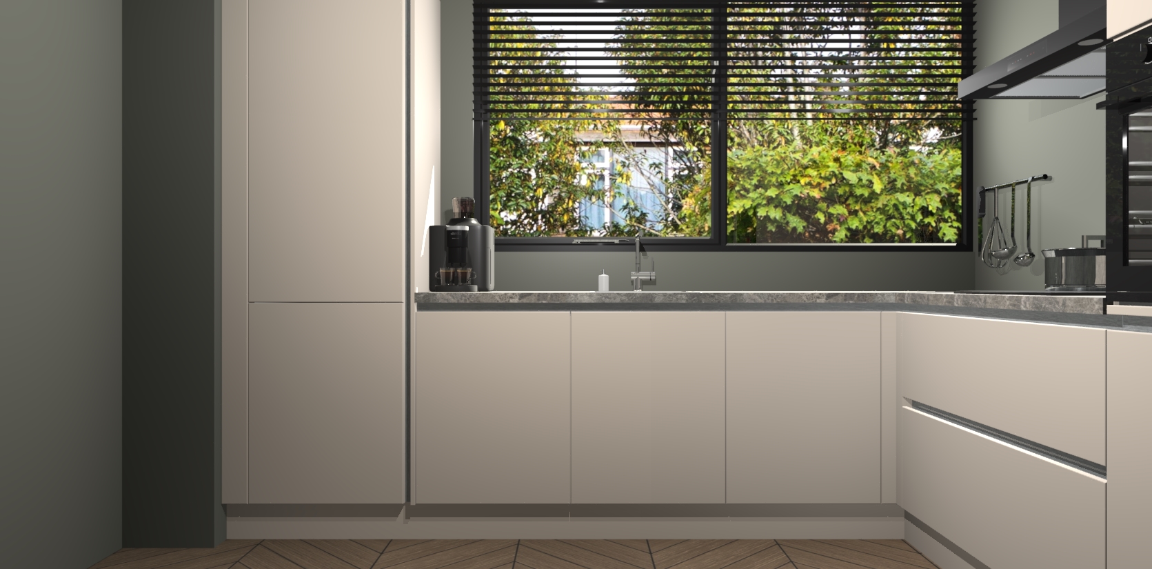 Wij presenteren de revolutie in keukens: de kasjmier greeploze keuken Vogar. Met modern design, een tijdloos uiterlijk en kasten die al voor gemonteerd worden geleverd, laat deze stijlvolle keuken uw kookervaring op een hele nieuwe manier transformeren.