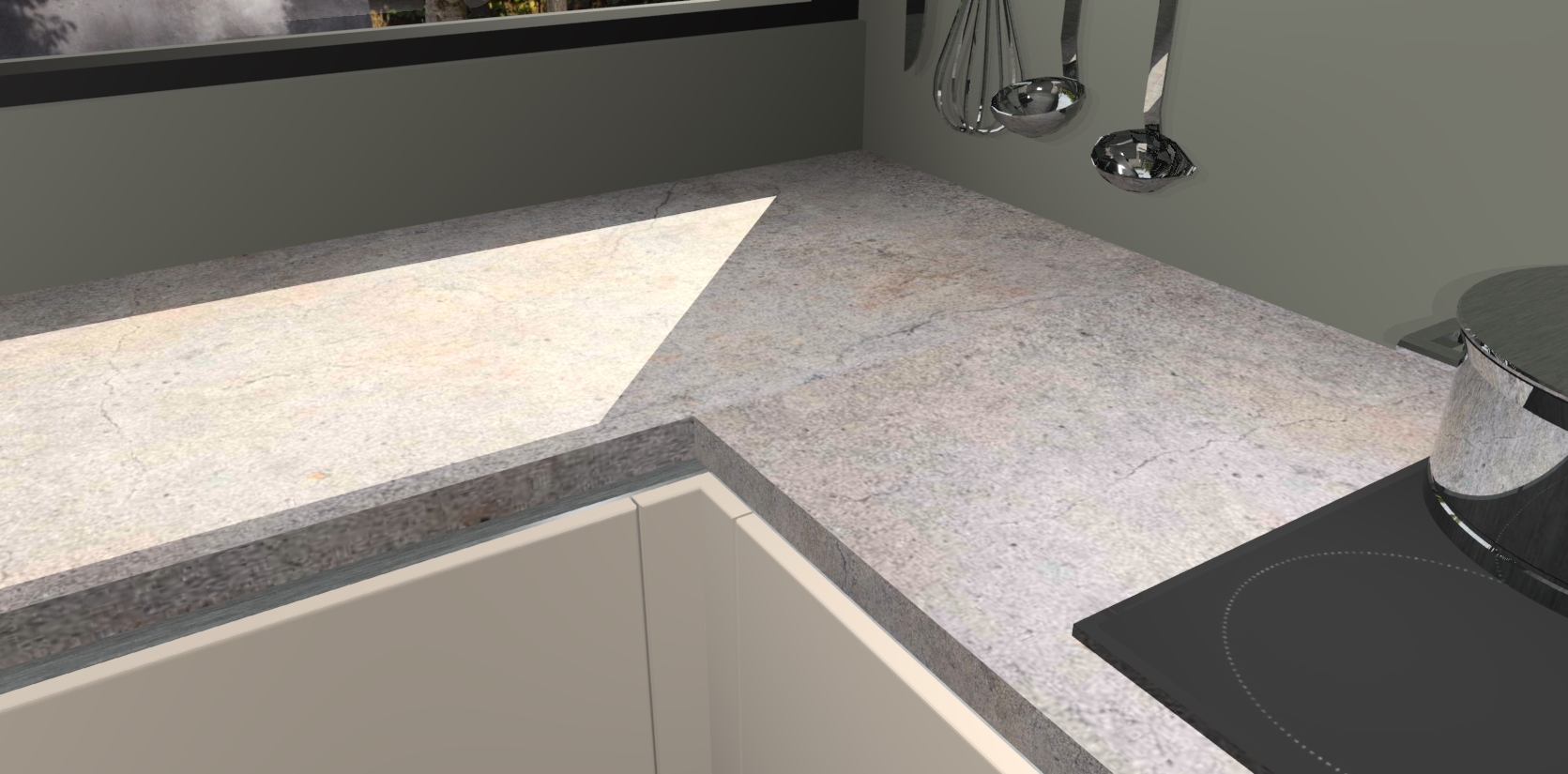 - Bij een hoekwerkblad zijn de hoeken in gevreesd en op maat gemaakt