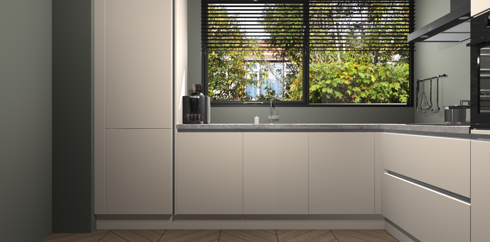 Wij presenteren de revolutie in keukens: de kasjmier greeploze keuken Vogar. Met modern design, een tijdloos uiterlijk en kasten die al voor gemonteerd worden geleverd, laat deze stijlvolle keuken uw kookervaring op een hele nieuwe manier transformeren.