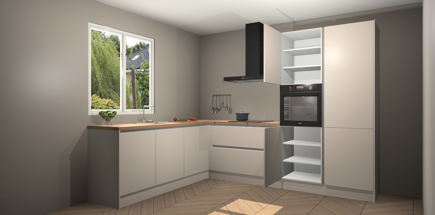 Veel meer dan dat: met de aankoop van deze keuken krijgt u maar liefst 5 ingebouwde huishoudtoestellen, zoals een oven, inductiekookplaat, afzuigkap, vaatwasser en koelkast. Ze zijn makkelijk te upgraden naar AEG of bijvoorbeeld van oven naar een combimagnetron na bestelling. En alsof dat nog niet genoeg is hebben de kastjes allemaal softclose deuren voor extra comfort en luxe!