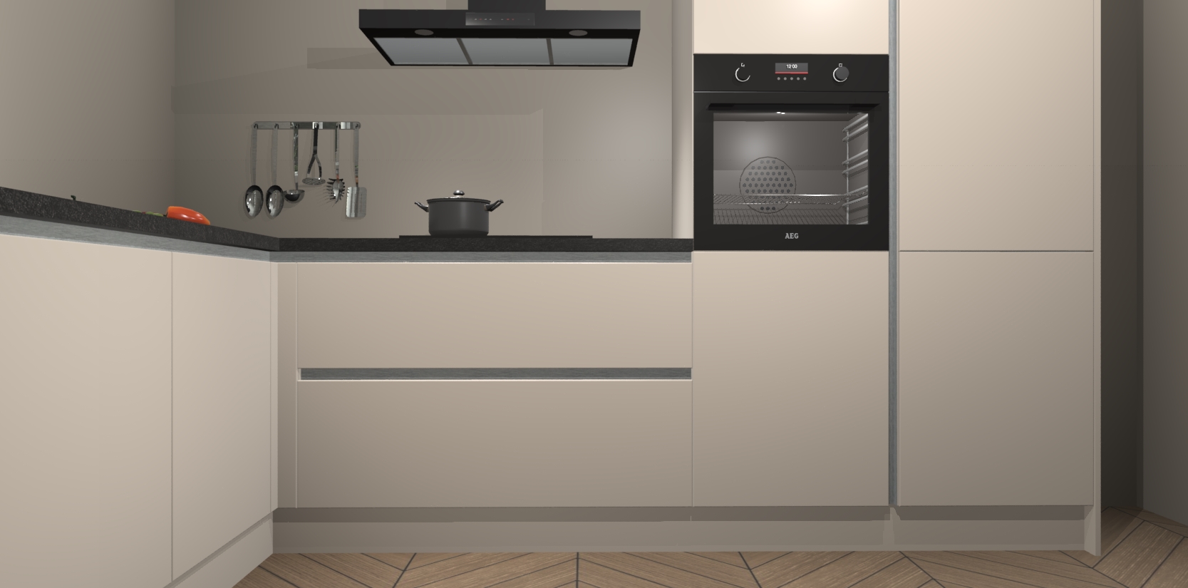 Veel meer dan dat: met de aankoop van deze keuken krijgt u maar liefst 5 ingebouwde huishoudtoestellen, zoals een oven, inductiekookplaat, afzuigkap, vaatwasser en koelkast. Ze zijn makkelijk te upgraden naar AEG of bijvoorbeeld van oven naar een combimagnetron na bestelling. En alsof dat nog niet genoeg is hebben de kastjes allemaal softclose deuren voor extra comfort en luxe!