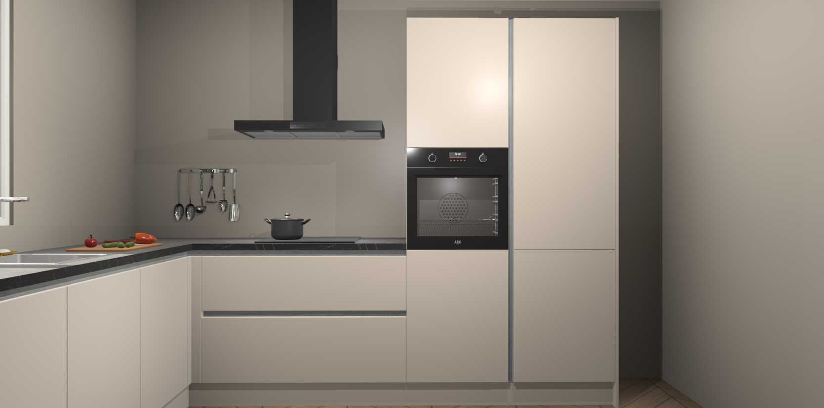 Veel meer dan dat: met de aankoop van deze keuken krijgt u maar liefst 5 ingebouwde huishoudtoestellen, zoals een oven, inductiekookplaat, afzuigkap, vaatwasser en koelkast. Ze zijn makkelijk te upgraden naar AEG of bijvoorbeeld van oven naar een combimagnetron na bestelling. En alsof dat nog niet genoeg is hebben de kastjes allemaal softclose deuren voor extra comfort en luxe!