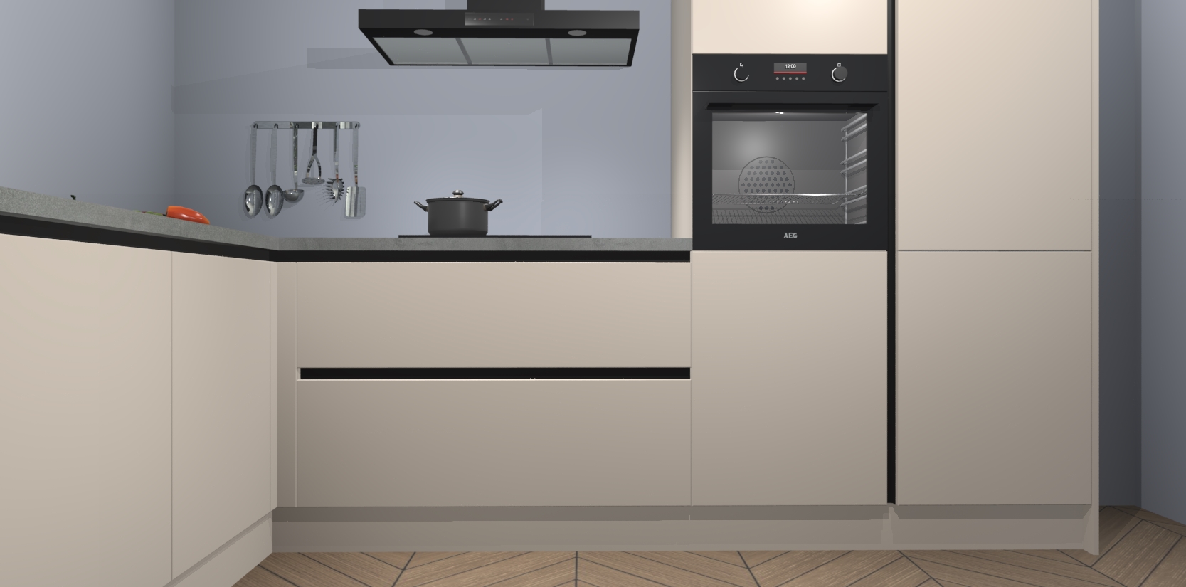 Veel meer dan dat: met de aankoop van deze keuken krijgt u maar liefst 5 ingebouwde huishoudtoestellen, zoals een oven, inductiekookplaat, afzuigkap, vaatwasser en koelkast. Ze zijn makkelijk te upgraden naar AEG of bijvoorbeeld van oven naar een combimagnetron na bestelling. En alsof dat nog niet genoeg is hebben de kastjes allemaal softclose deuren voor extra comfort en luxe!