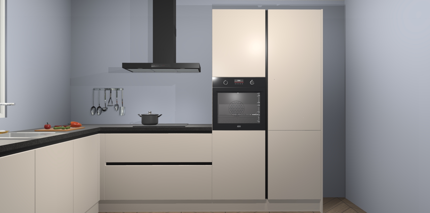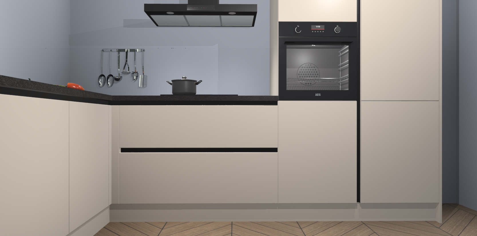 Veel meer dan dat: met de aankoop van deze keuken krijgt u maar liefst 5 ingebouwde huishoudtoestellen, zoals een oven, inductiekookplaat, afzuigkap, vaatwasser en koelkast. Ze zijn makkelijk te upgraden naar AEG of bijvoorbeeld van oven naar een combimagnetron na bestelling. En alsof dat nog niet genoeg is hebben de kastjes allemaal softclose deuren voor extra comfort en luxe!