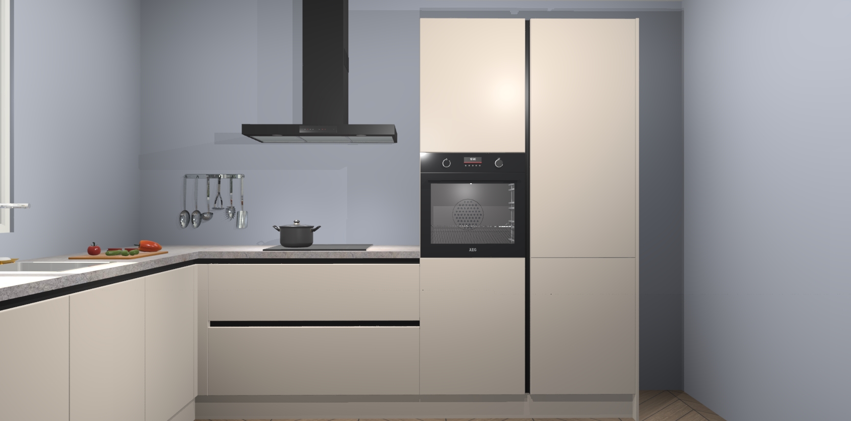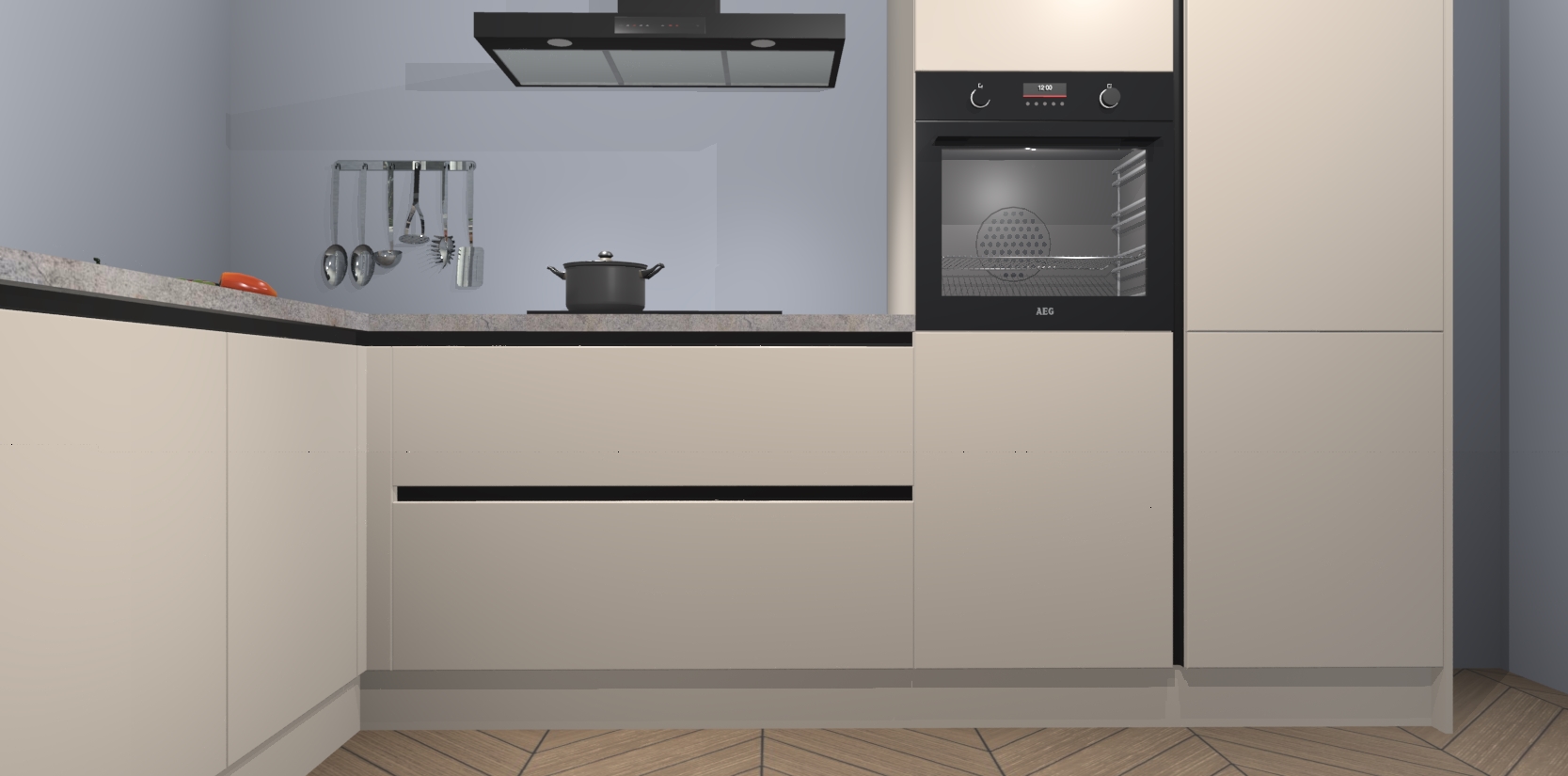 Veel meer dan dat: met de aankoop van deze keuken krijgt u maar liefst 5 ingebouwde huishoudtoestellen, zoals een oven, inductiekookplaat, afzuigkap, vaatwasser en koelkast. Ze zijn makkelijk te upgraden naar AEG of bijvoorbeeld van oven naar een combimagnetron na bestelling. En alsof dat nog niet genoeg is hebben de kastjes allemaal softclose deuren voor extra comfort en luxe!