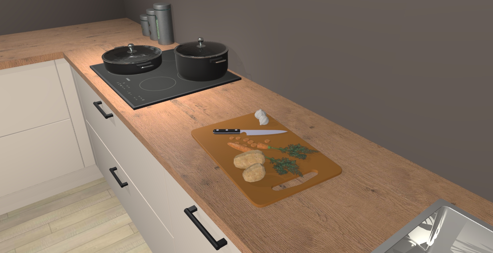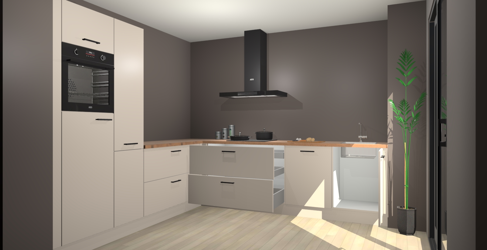Inclusief plinten, stelpoten en werkblad